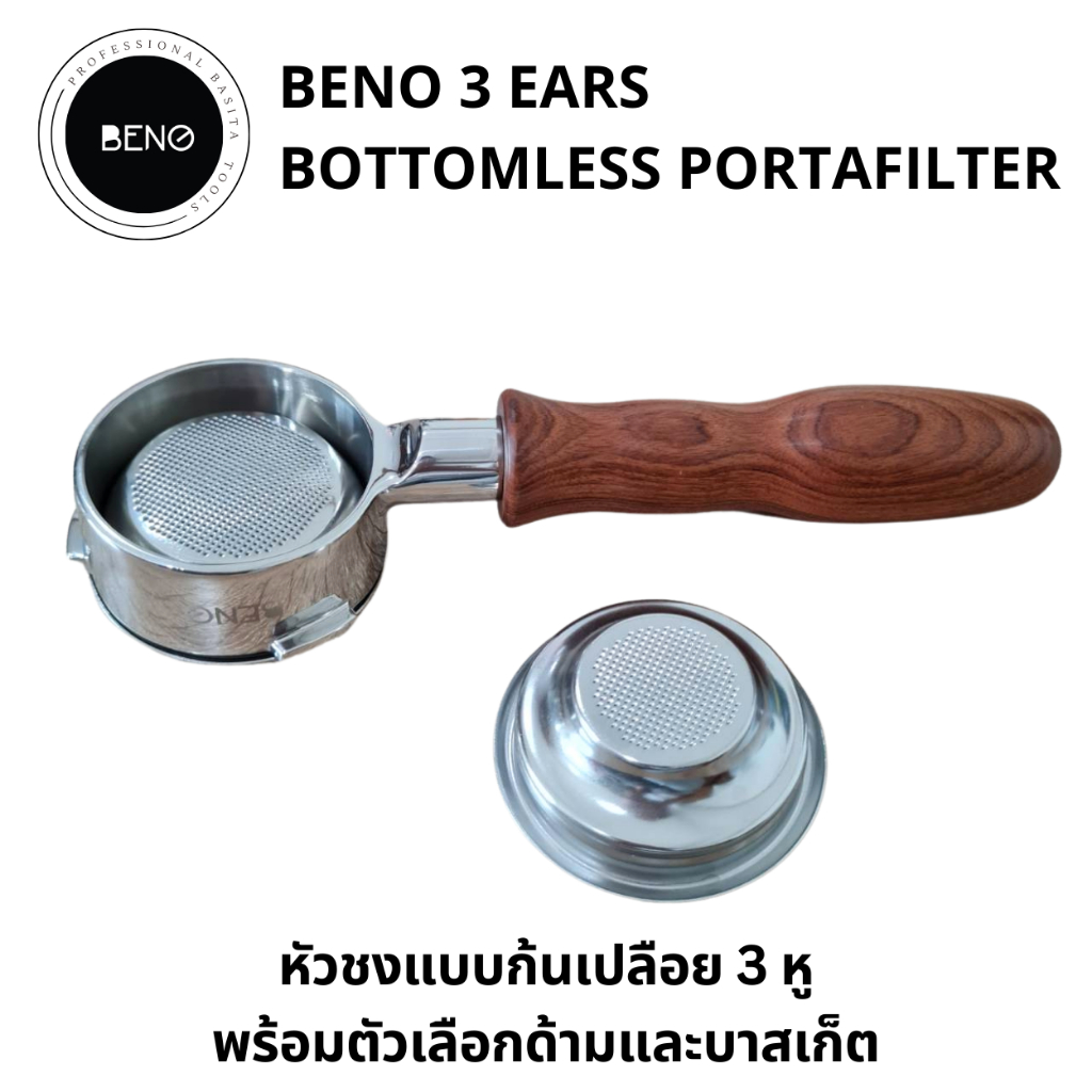 ฺBeno 3 ears 58 mm Bottomless Portafilter หัวชงกาแฟขนาด 58 มิล 3 หู ก้นเปลือย สแตนเลสหูหนาล็อคแน่น ด้ามจับ ตะแกรง ก้านชง