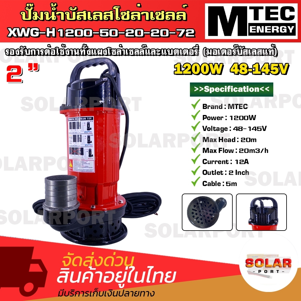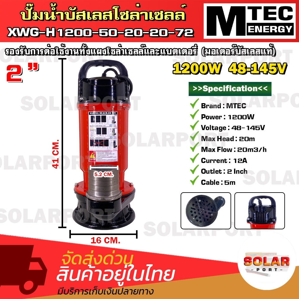 ปั๊มน้ำโซล่าเซลล์ MTEC. รุ่น XWG-H1200-50-20-20-72 อนุกรม2-3แผงใช้งานได้เลย ท่อส่งน้ำขนาด2นิ้ว