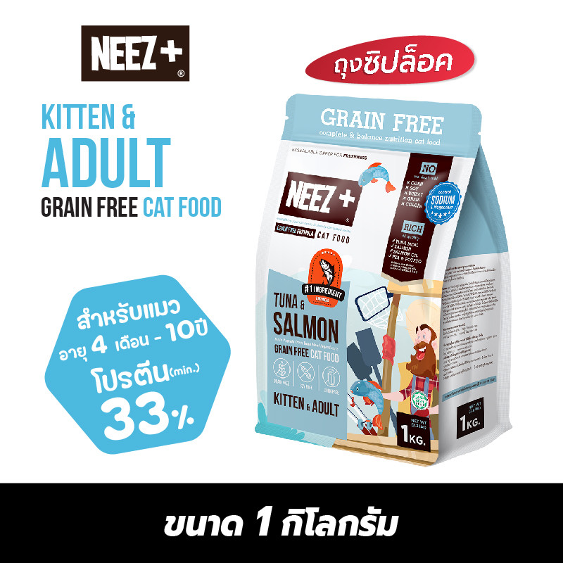 Neez+ นีซพลัส [ 1kg ถุงจากระสอบ] อาหารเม็ดน้องแมว ทุกช่วงวัย ไม่เค็ม บำรุงขน ตัวแน่น!