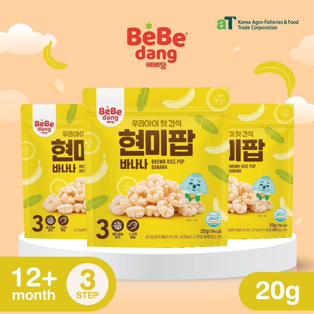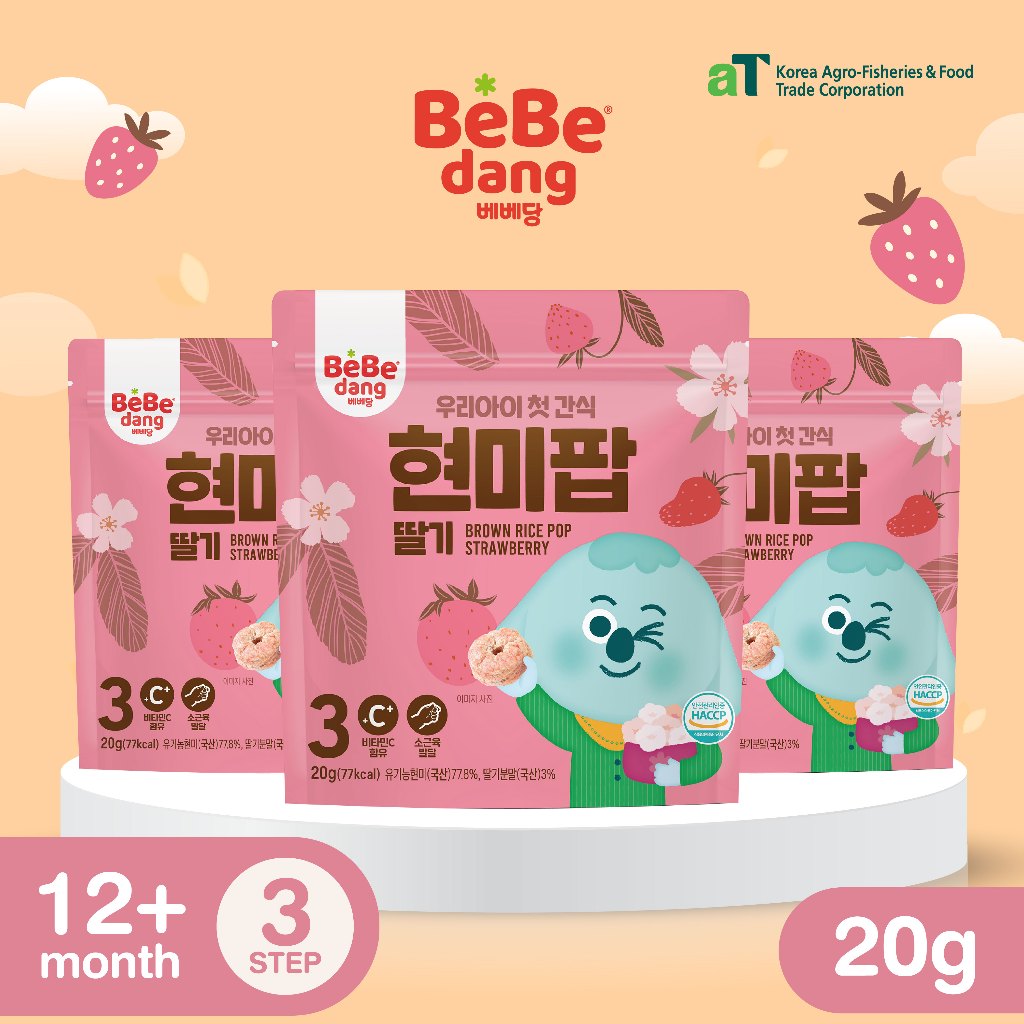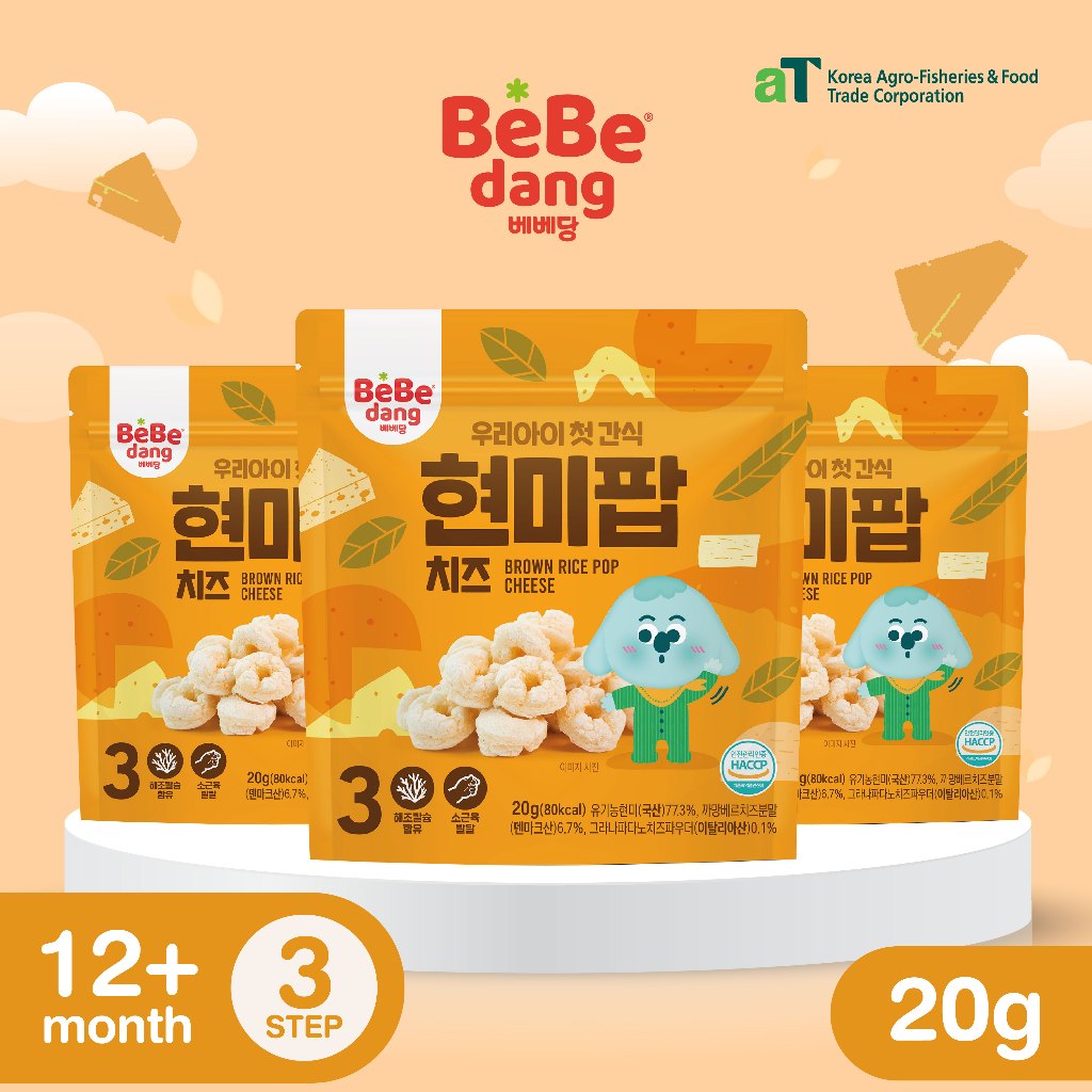 [แถม1ซอง]เบเบดัง Rice Pop ขนมข้าวกล้องอบป๊อปสำหรับเด็ก แบรนด์ดังจากเกาหลี 30g. Bebedang