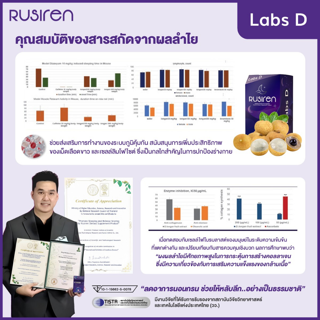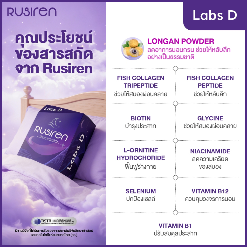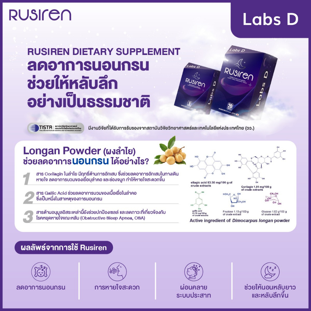 Rusiren [ 2 แถม 1 กล่องเล็ก ] รูไซเร็น ผลิตภัณฑ์เสริมอาหารแก้นอนกรน นอนไม่หลับ หลับไม่สนิท | By Labs D