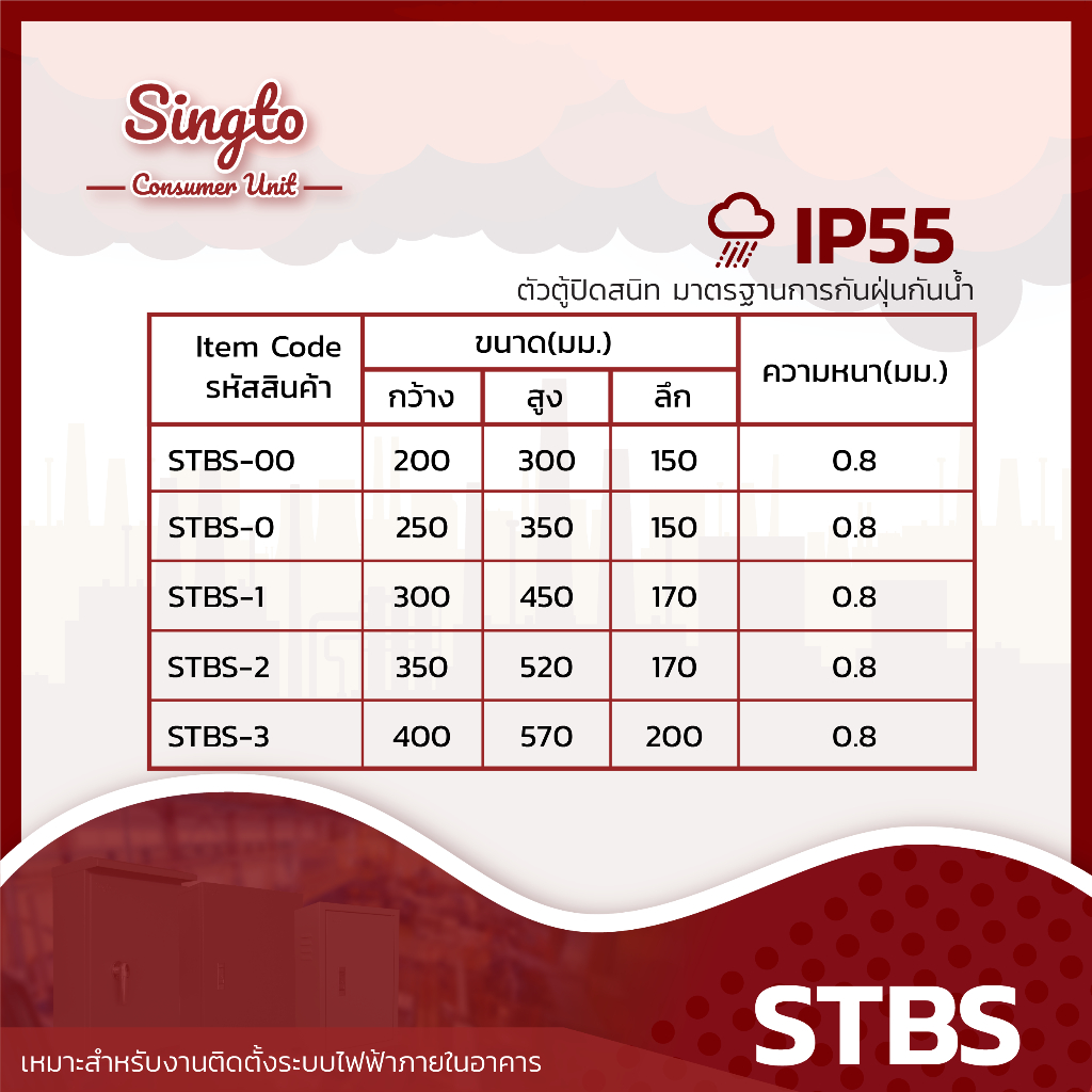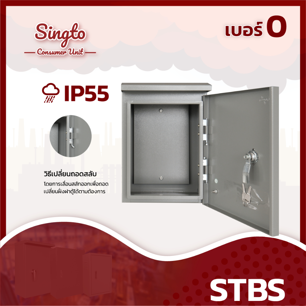 ตู้เหล็ก Singto ตู้ไฟกันน้ำมีหลังคา STBS 0 ขนาด 250x350x150 mm. IP55 ตู้สวิตซ์บอร์ด