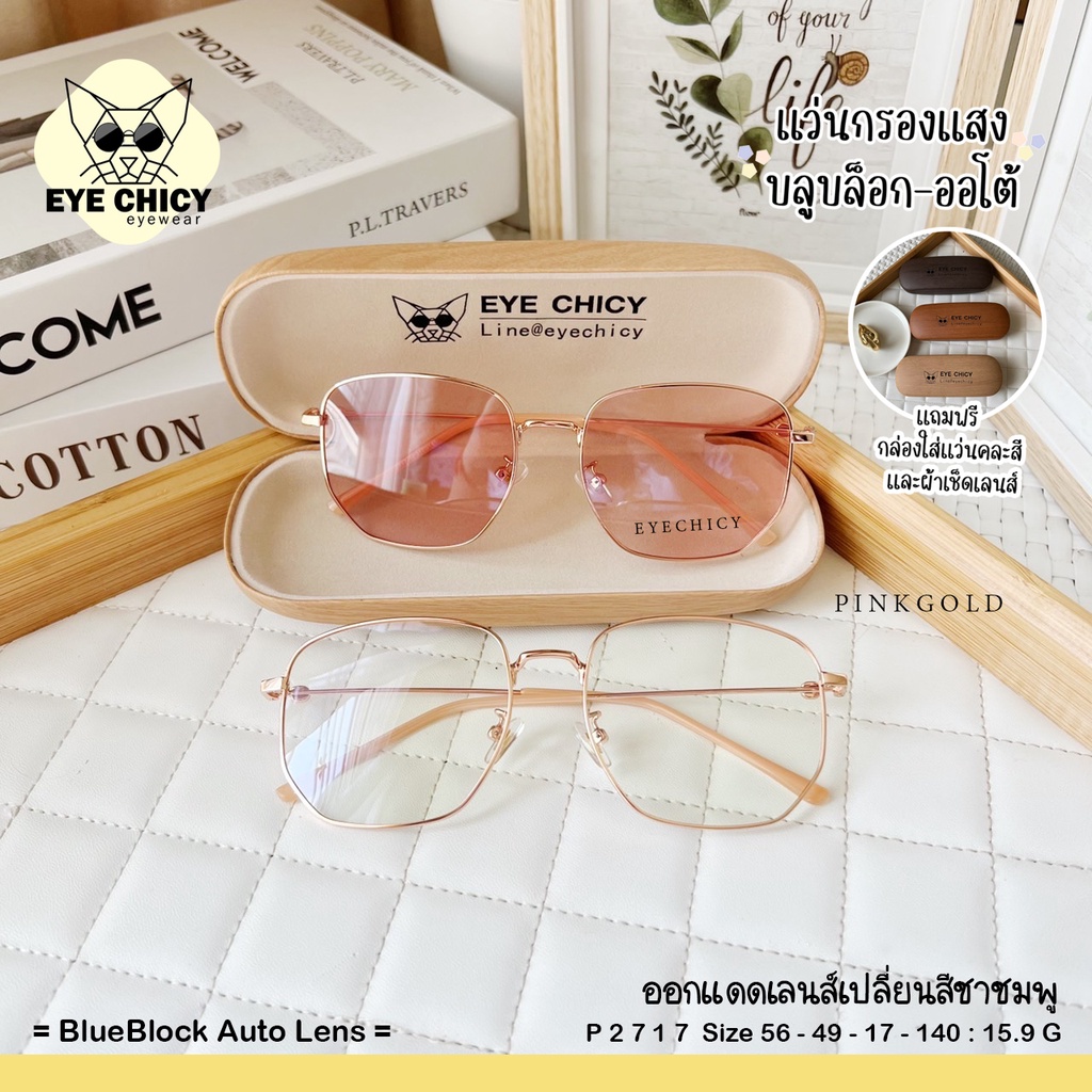 แว่นกรองแสงบลูบล็อก ออโต้แท้ BlueBlock+Auto กรองแสงสีฟ้า รุ่น 992717 EYECHICY ออกแดดเลนส์เปลี่ยนสี แว่นกรองแสงคอม
