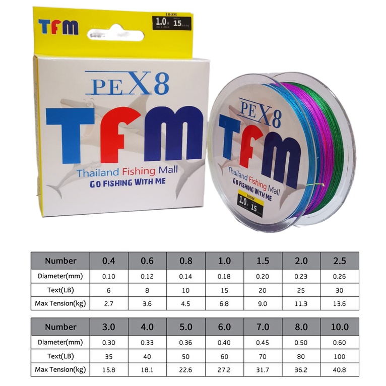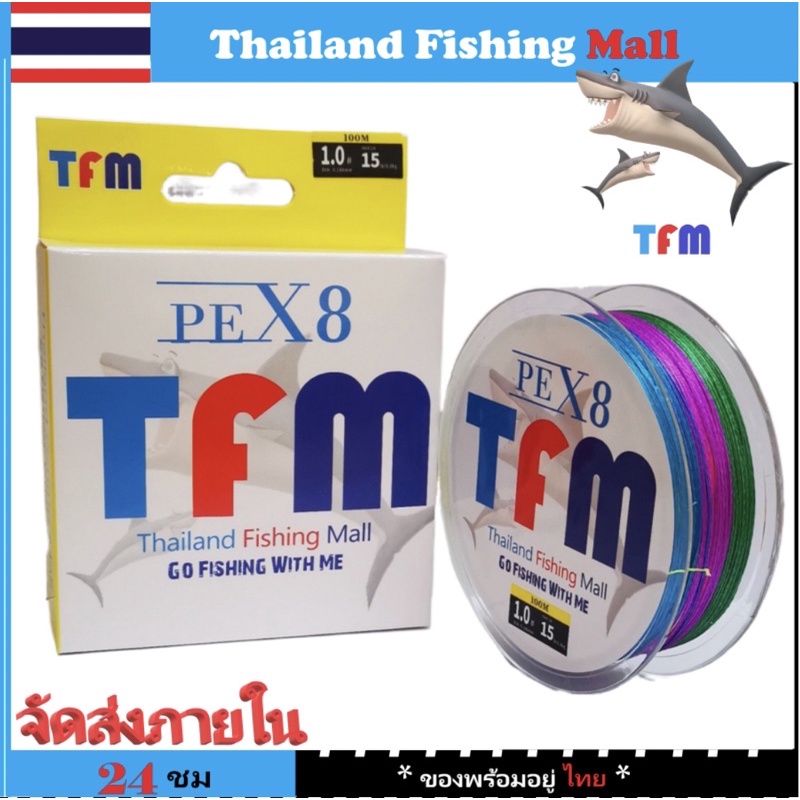 1-2วัน (ส่งไว-ราคาส่ง) TFM X8 100M - Multicolor สายPE ถัก8 หลากสี *เหนียว+ทน *ยาว100เมตร【TFM】
