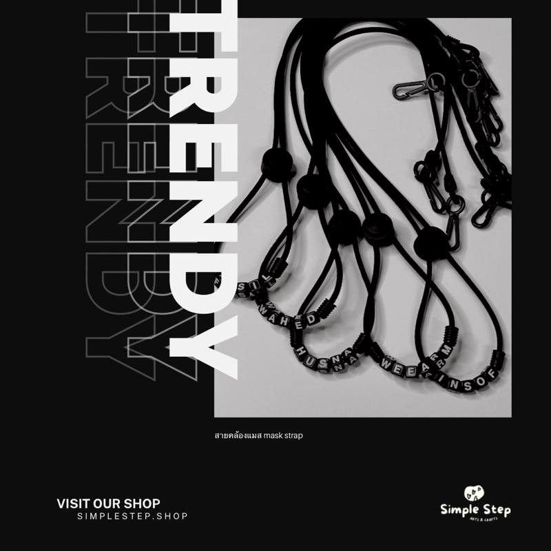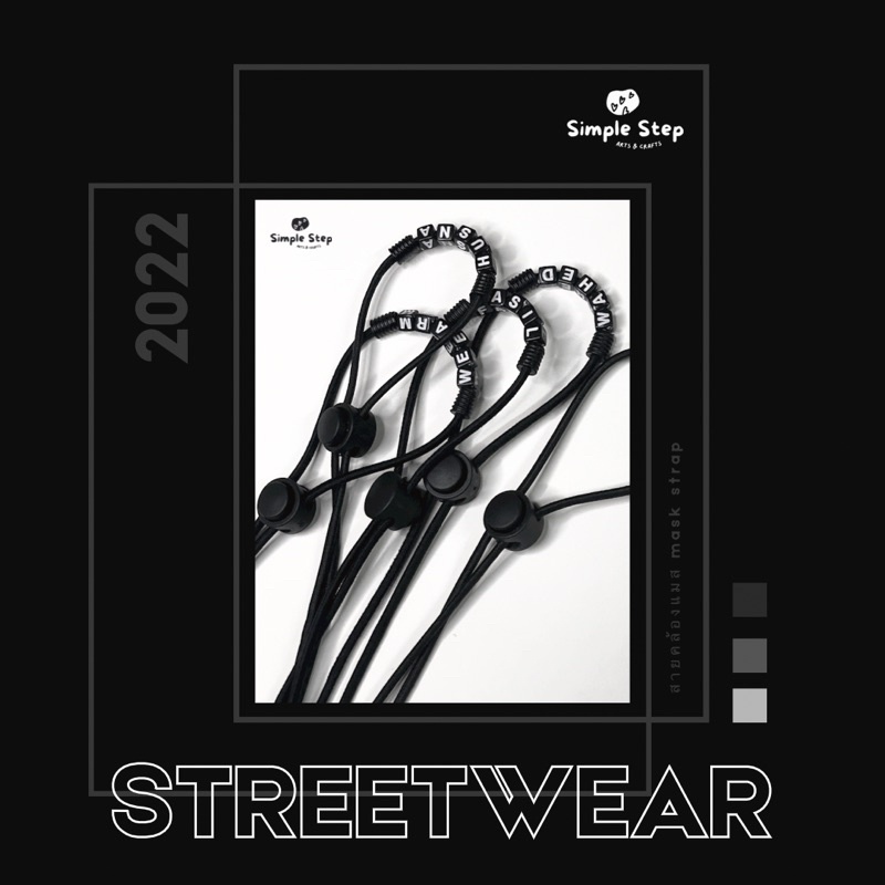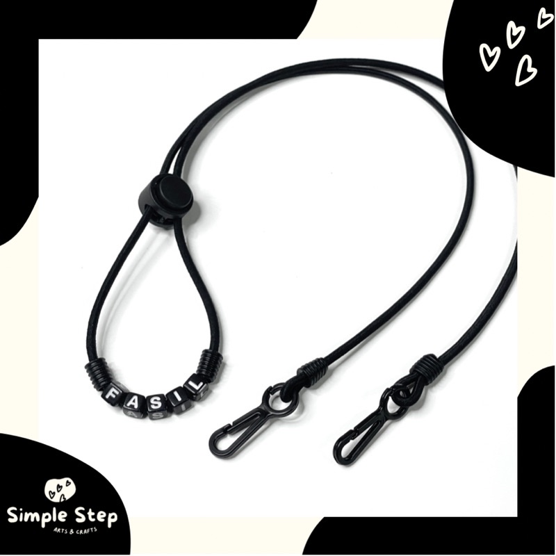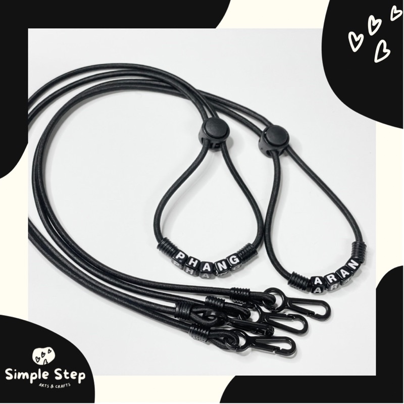 (สายดำ อักษรดำขาว) สายคล้องแมส ใส่ชื่อ+ตัวปรับสาย
