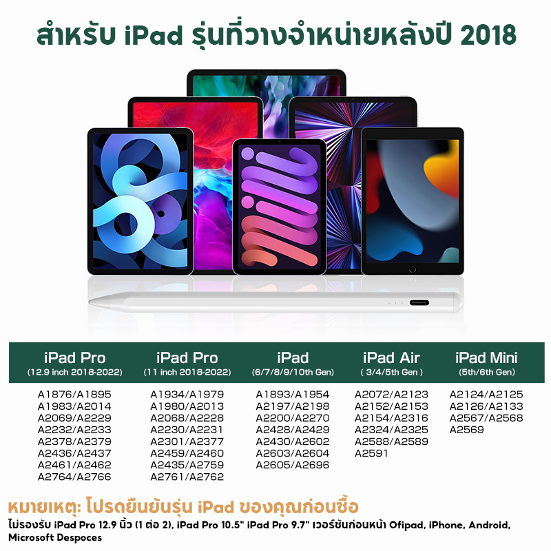 [ชาร์จเร็ว Gen18]ปากกาไอแพด วางมือบนจอ+แรเงาได้ pencil ปากกาสไตลัส Stylus Pen สำหรับGen10,9,8,7,6 Air5 Air4 Air3 Mini6,5