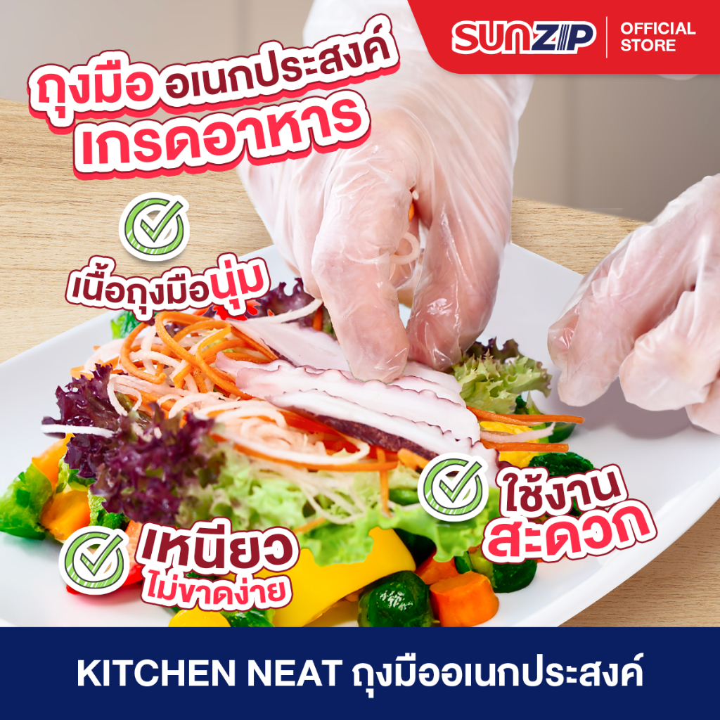 SUNZIP | ถุงมือทำอาหาร Food Grade 100 ชิ้น/กล่อง กระชับมือ หยิบจับสิ่งของได้อย่างสะดวก ถุงมือสัมผัสหน้าจอได้