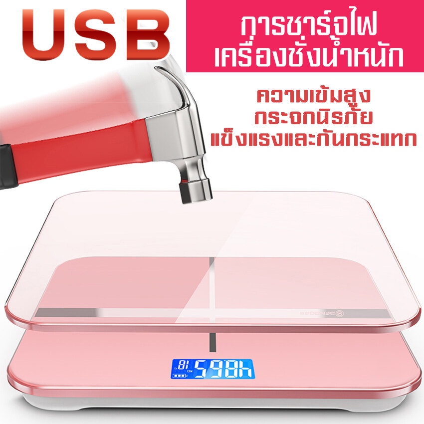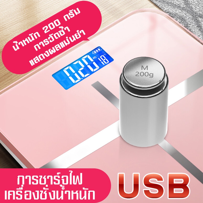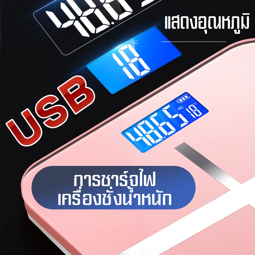 เครื่องชั่งน้ำหนักดิจิตอล 0.1-180KG จอLED เครื่องชั่งดิจิตอล ชาร์จด้วยUSB แสดงอุณหภูมิ (แถมสายชาร์จและสายวัด)