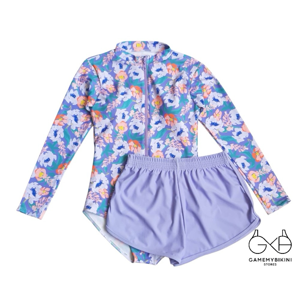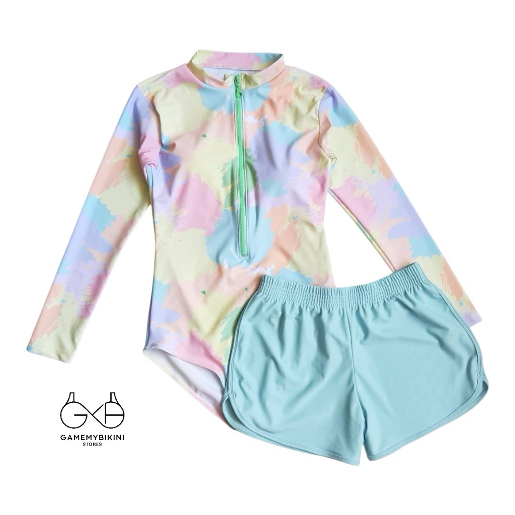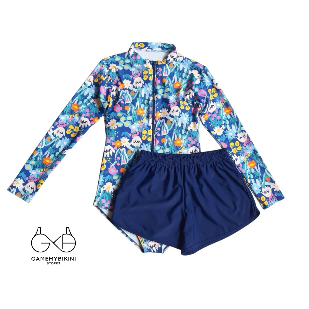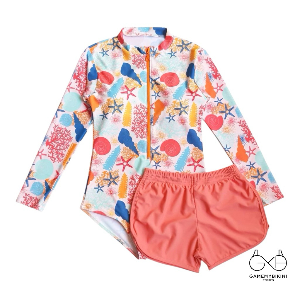Gamemy bikini ชุดว่ายน้ำวันพีชแขนยาว+ขาสั้นสำหรับสาวอวบ[size P]