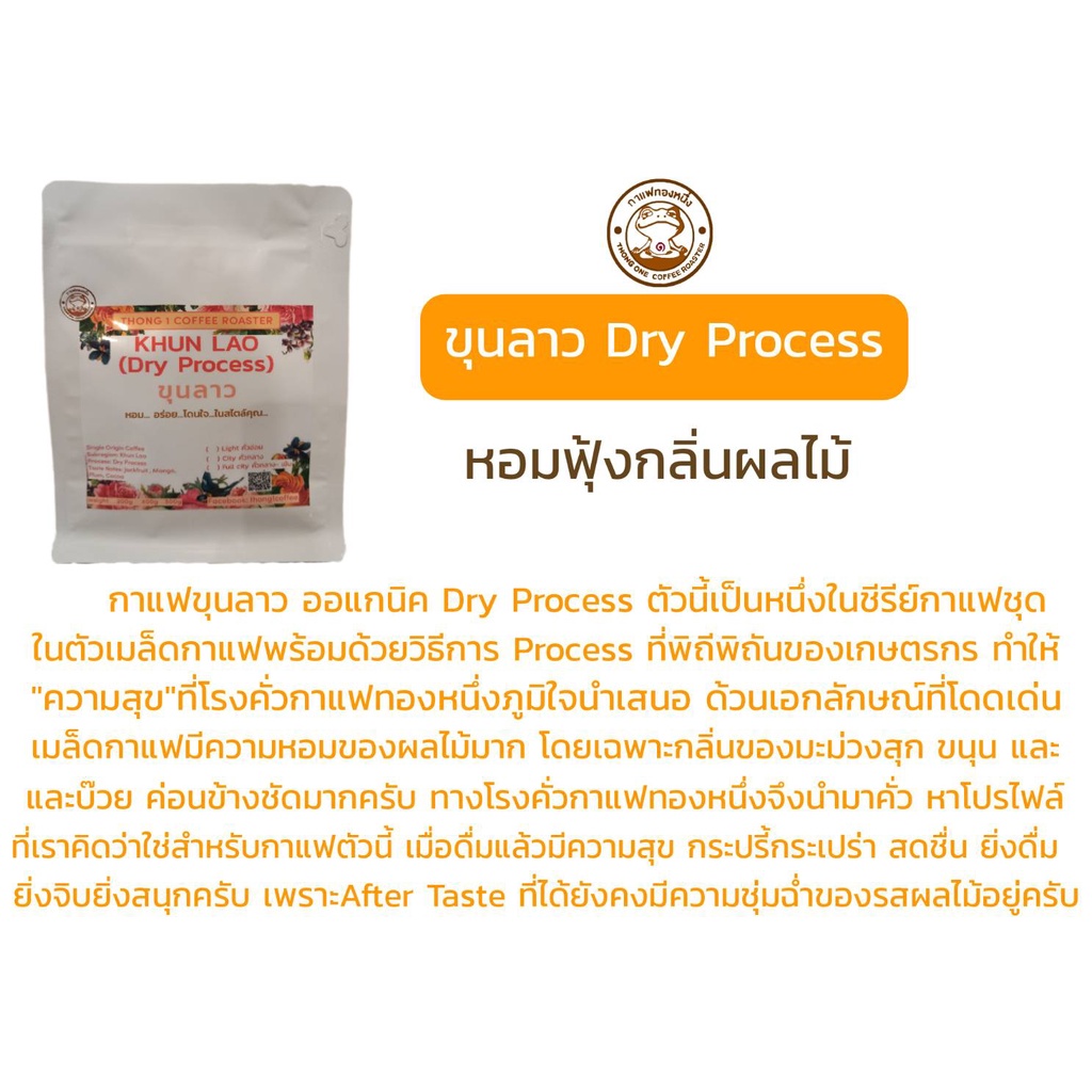 กาแฟทองหนึ่ง - เมล็ดกาแฟคั่ว ขุนลาว (KHUN LAO) Natural Dry Process ออแกนิค