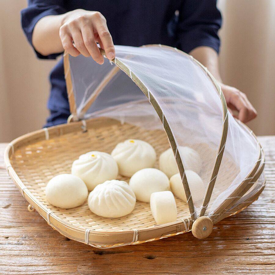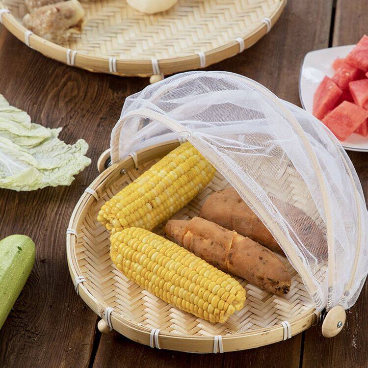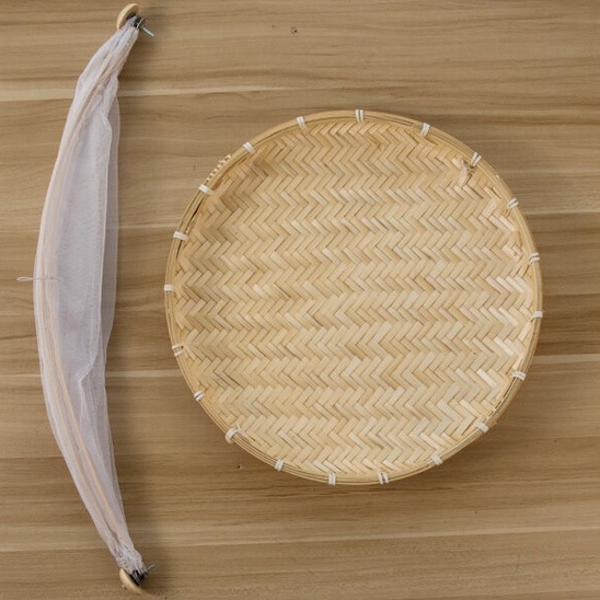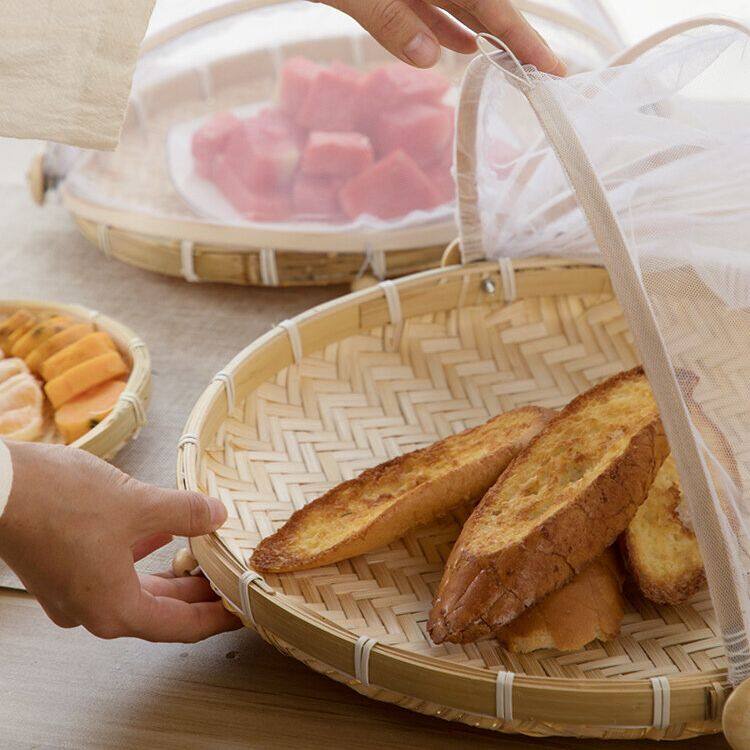 ตะกร้ากระด้ง กระด้งมุ้งครอบ มีฝาเปิด กระด้งไม้ไผ่ ตะกร้ามีฝาปิดภาชนะ ใส่ผักผลไม้กันแมลง มี3ขนาด กระด้ง
