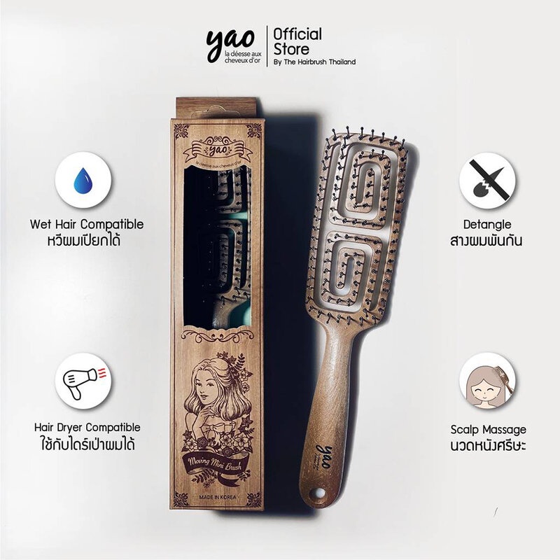 YAO Moving Mini Square Brush Wooden Texture 81g.