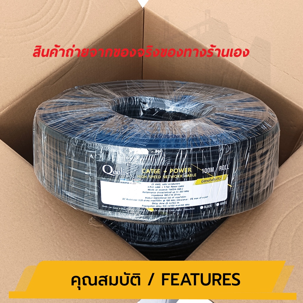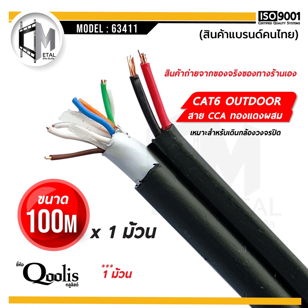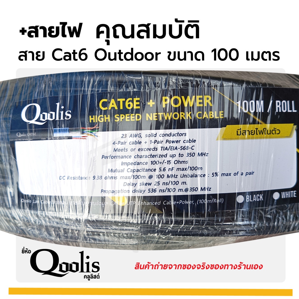 CAT6 + POWER 100m x 1 ม้วน ยี่ห้อ Qoolis Cable + สายไฟ Outdoor รหัส 63411 บรรจุ 1 ม้วน