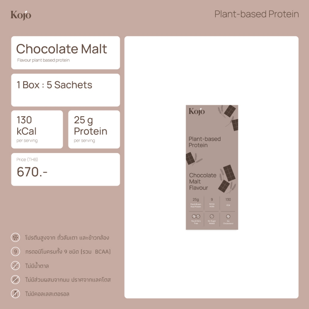 Try Me Set Chocolate Malt Flavour: Kojo Plant Protein โปรตีนจากพืช รสช็อคโกแลตมอลต์ เซ็ท 5 ซอง