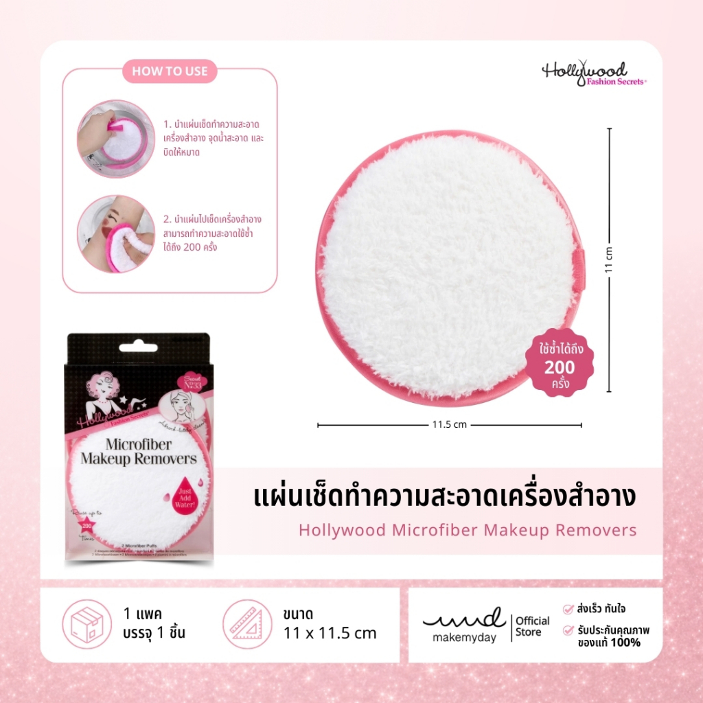 Hollywood Microfiber Makeup Removers / แผ่นเช็ดทำความสะอาดเครื่องสำอาง