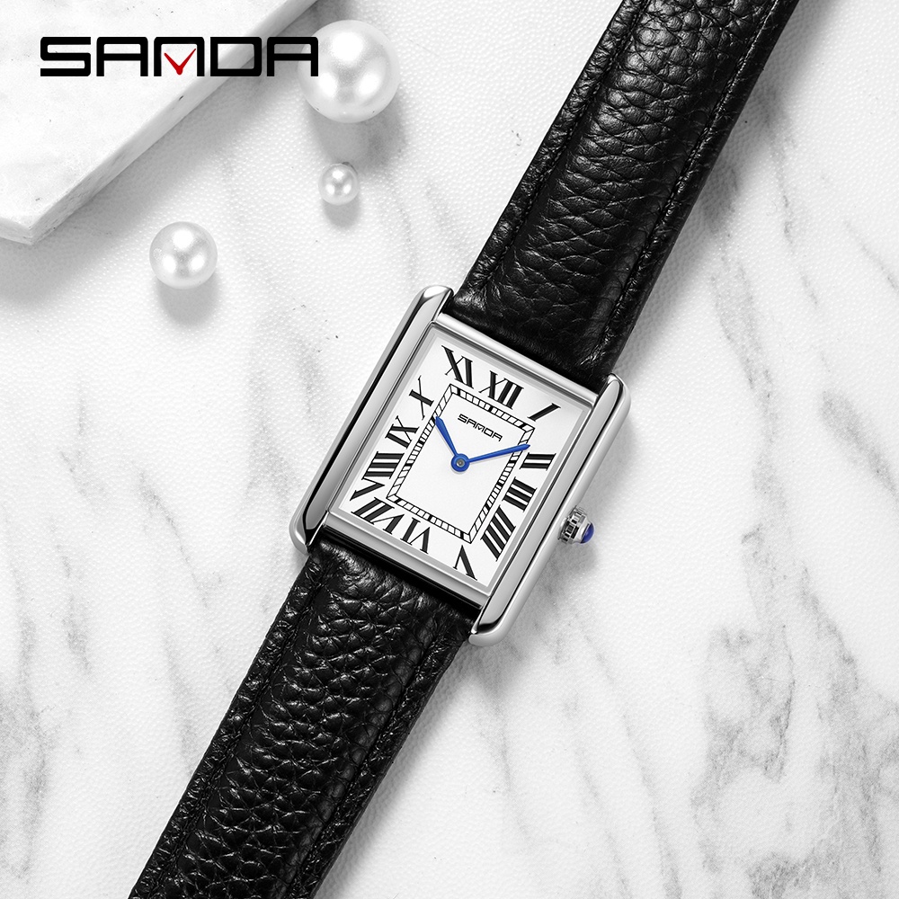 Sanda นาฬิกาข้อมือควอตซ์แฟชั่น สายหนัง กันน้ํา หรูหรา สําหรับสตรี