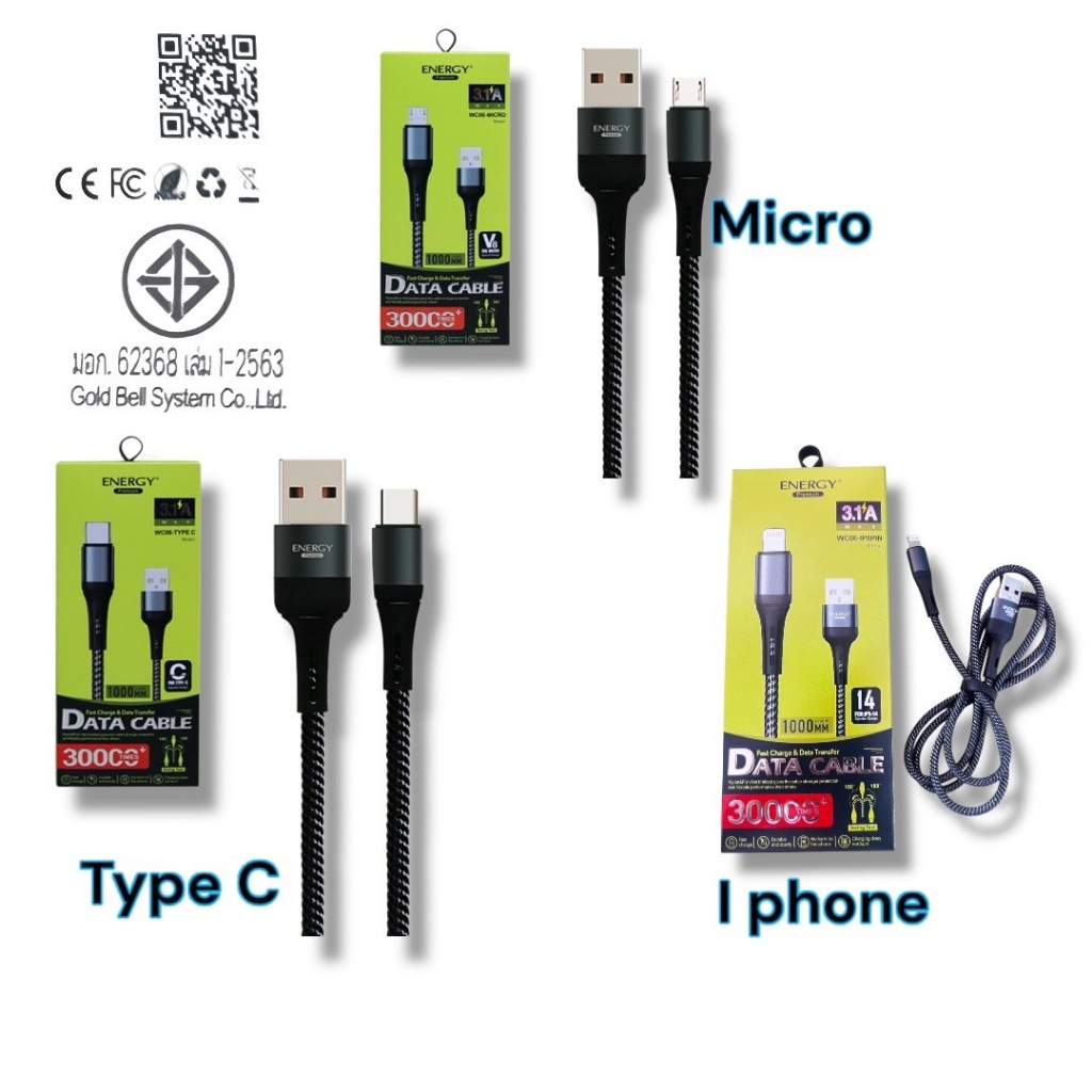ที่ชาร์จแบต 2.4A หัวชาร์จ + สายชาร์จ Micro / Type-c / IOS สายชาร์จ ชาร์จเร็ว 3.1A สายยาว2 m