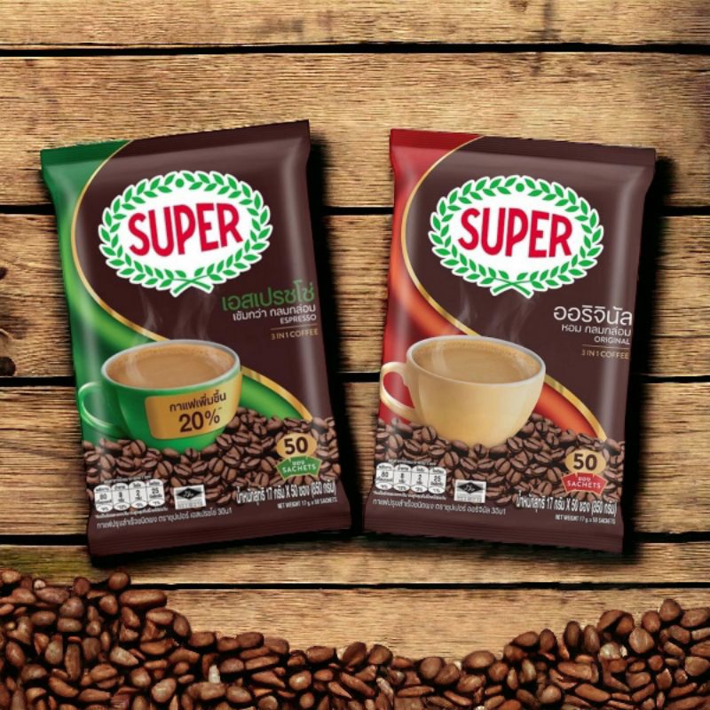ขายดี+ ซุปเปอร์กาแฟ กาแฟปรุงสำเร็จรูป 50 ซอง 3 in 1 50,25 ซองแดงและซองเขียว 1ซอง 17 กรัม