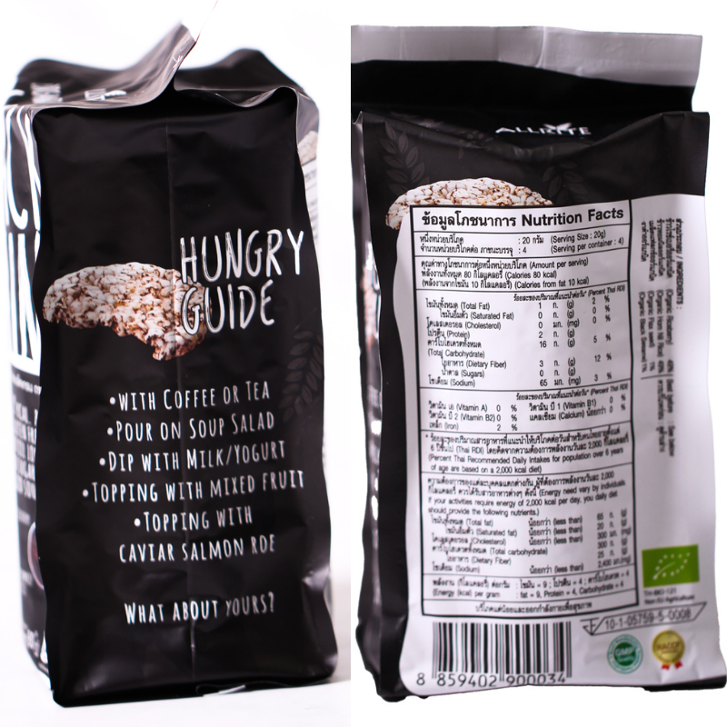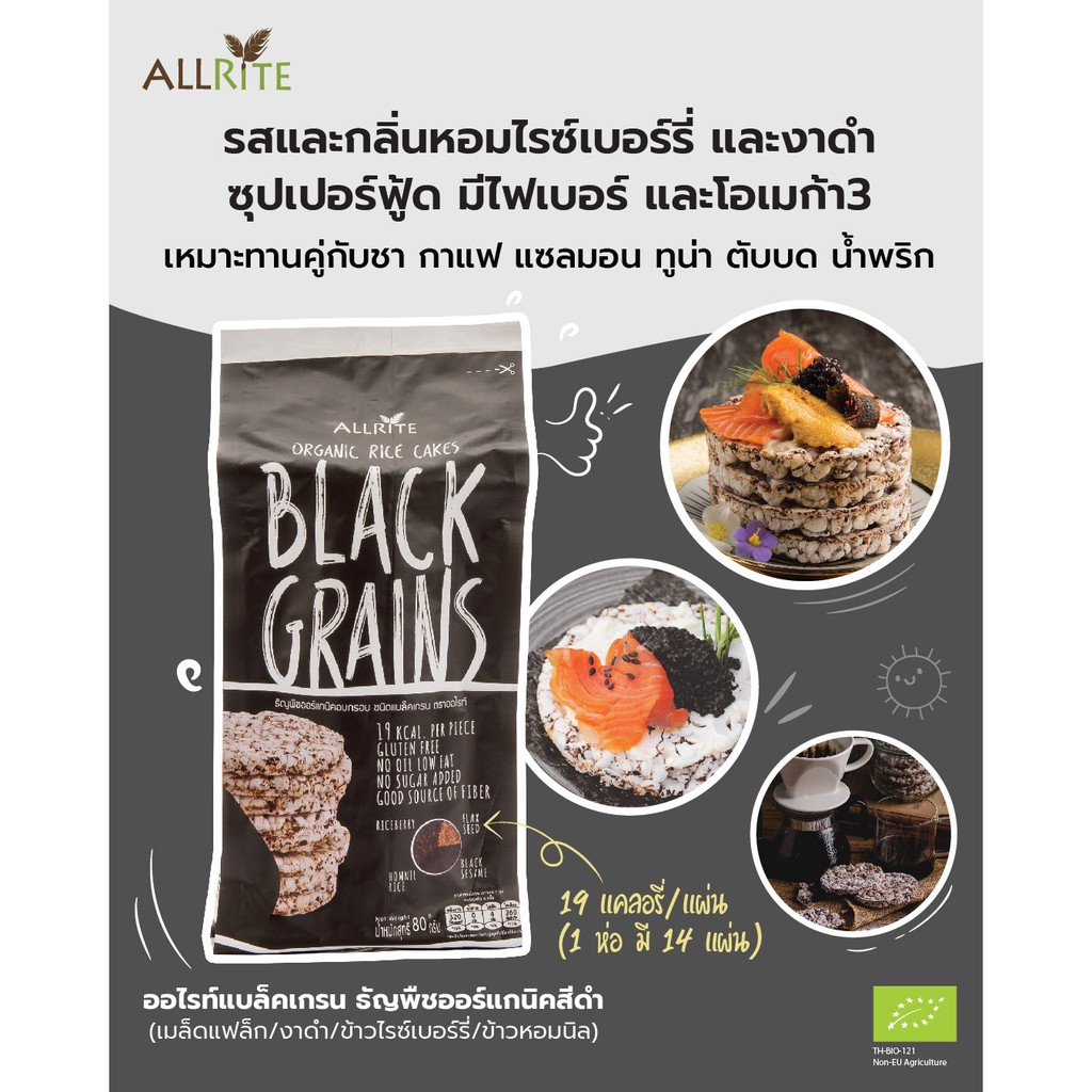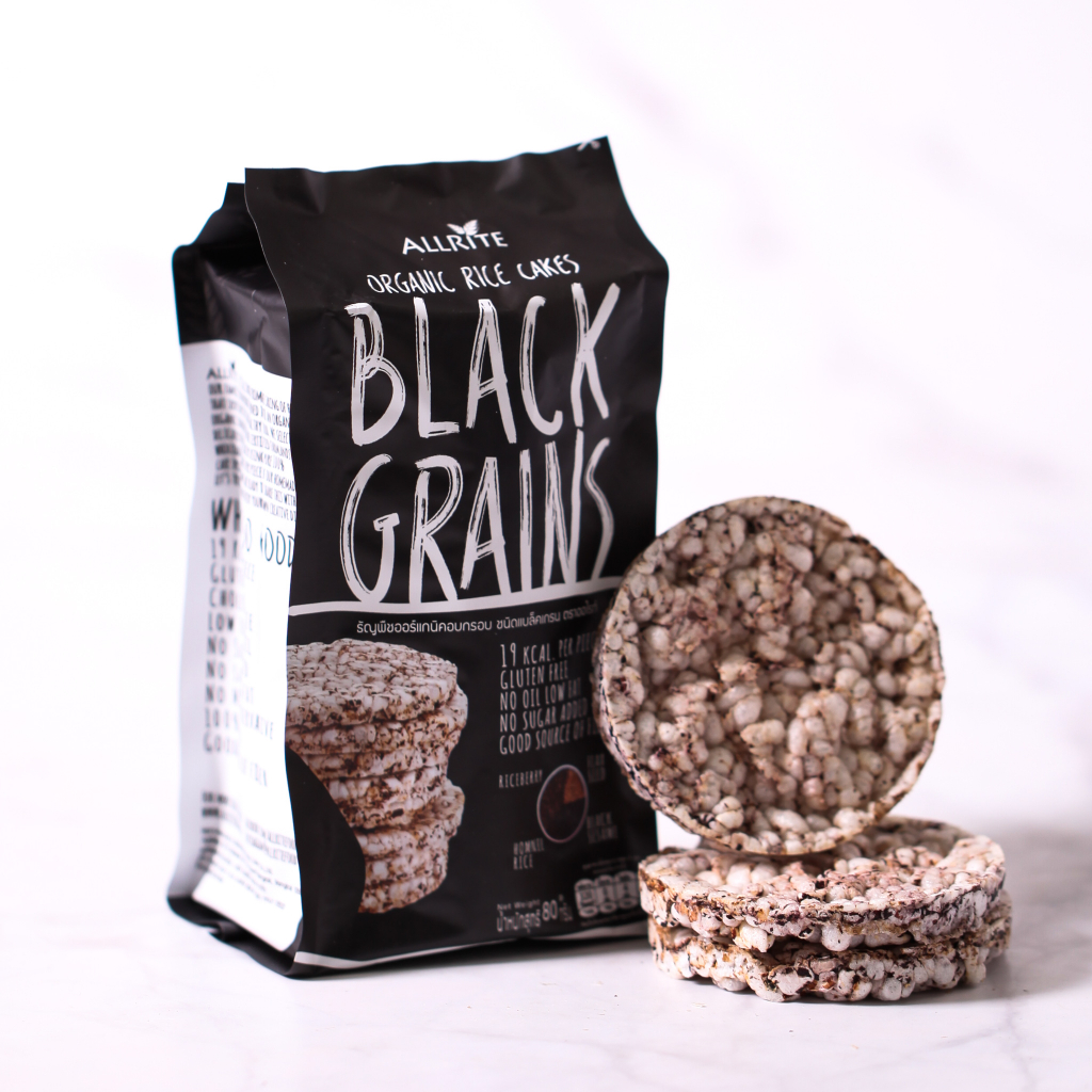 ขนม ขนมกินเล่น เค้กข้าว ออแกนิค อบกรอบ ธัญพืช สีดำ Organic Rice Cakes Black Grains Gluten free snack 80g Allrite