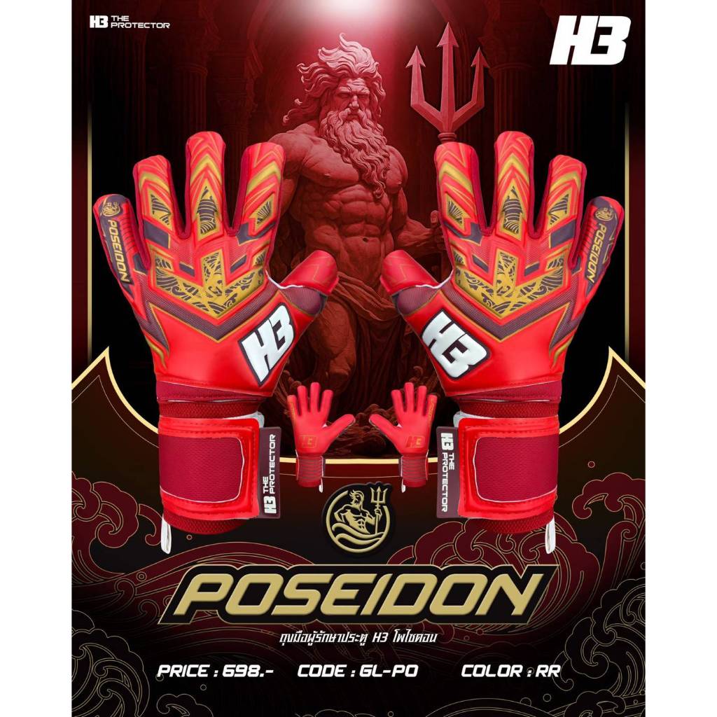ถุงมือผู้รักษาประตู ถุงมือโกล H3 รุ่น POSEIDON โฟมหนา4มิล มี finger safe 5 นิ้ว
