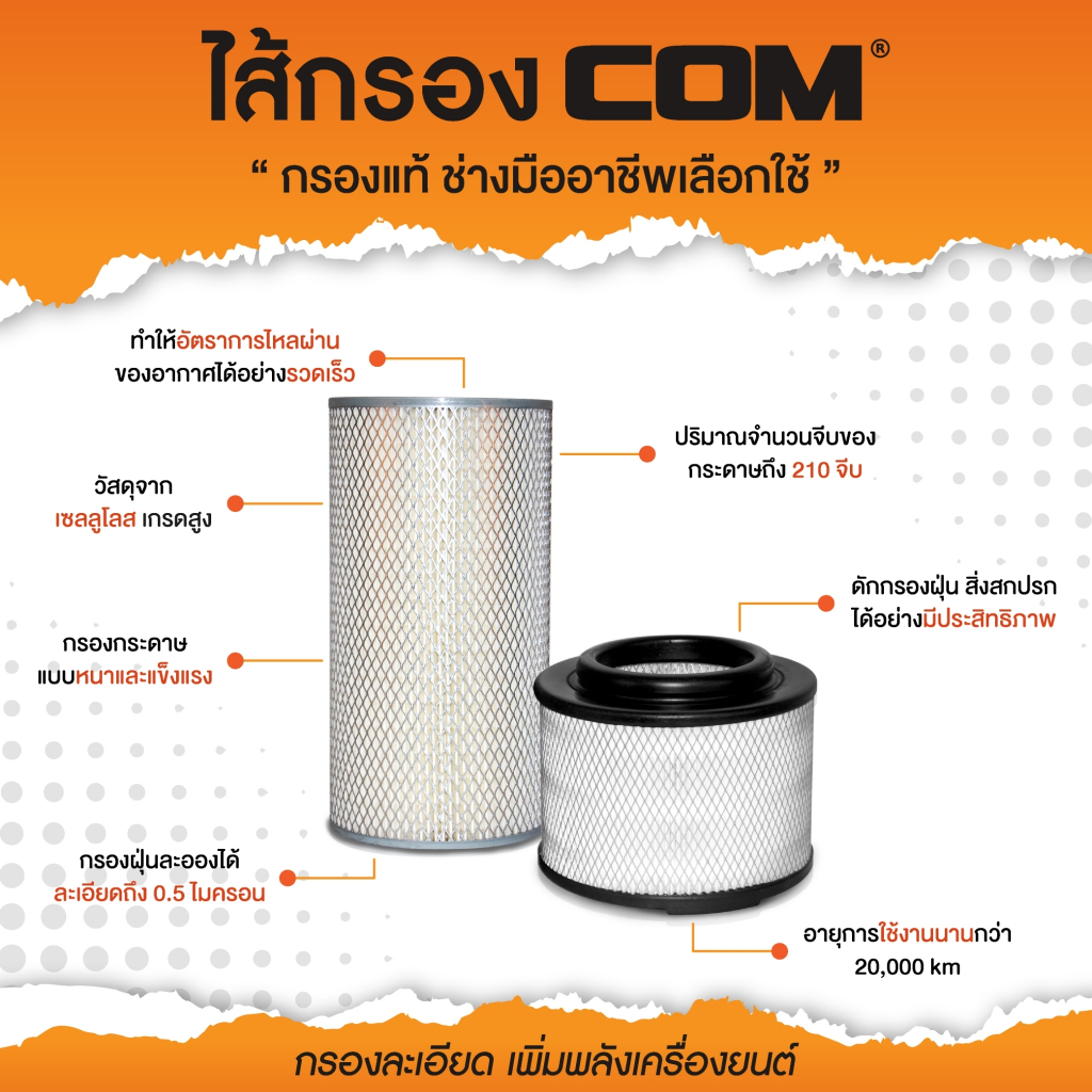 กรองอากาศ TOYOTA โตโยต้า COROLLA สามห่วง, ตูดเป็ด, 1.5 AE100-AE110, 1.6 AE101/AE111 ไส้กรอง COM