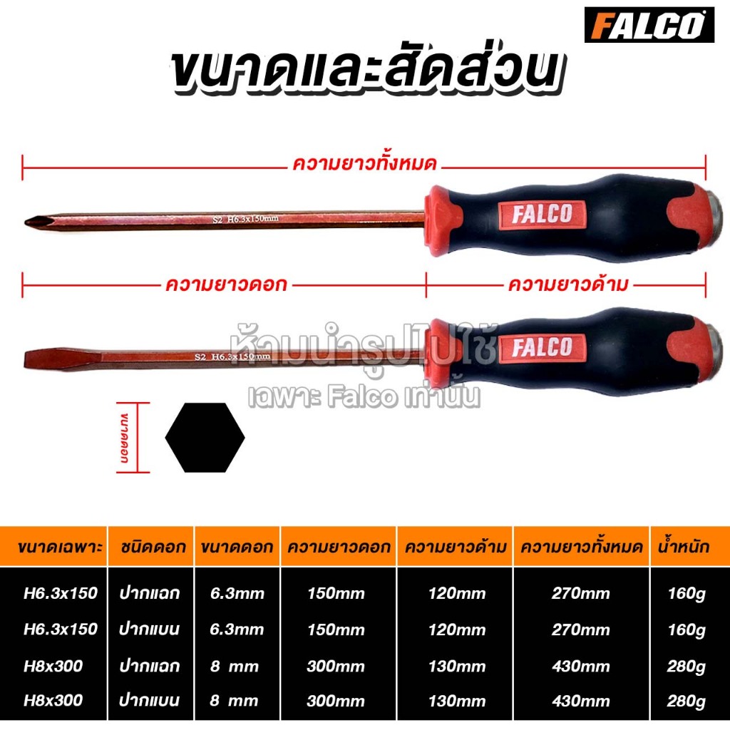 FALCO ไขควงแกนทะลุ S2 สามารถตอกได้ ด้ามตอก 6 นิ้ว 12 นิ้ว แกนเหล็กยาวทะลุ แบบปากแฉก แบบปากแบน