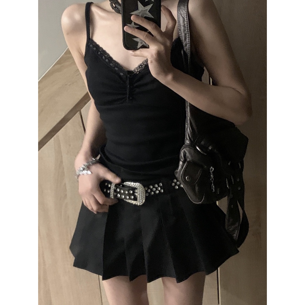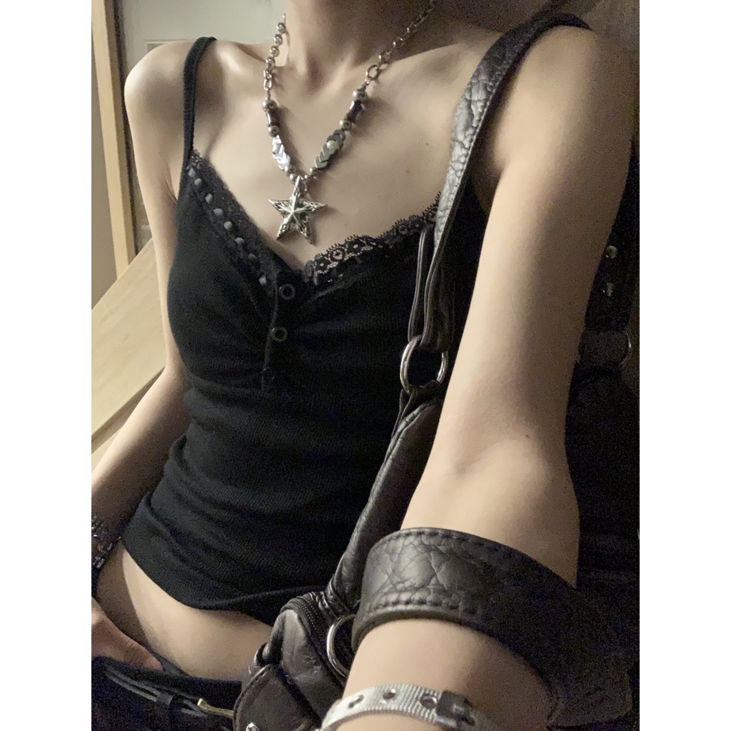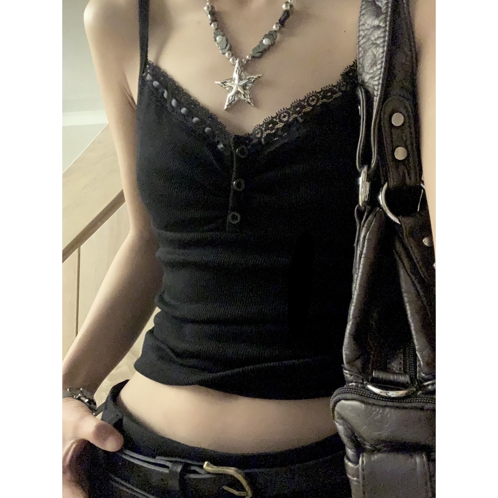 [เสื้อสายเดี่ยว ปักลายลูกไม้ สีดํา เข้ากับทุกการแต่งกาย แฟชั่นฤดูร้อน สําหรับผู้หญิง