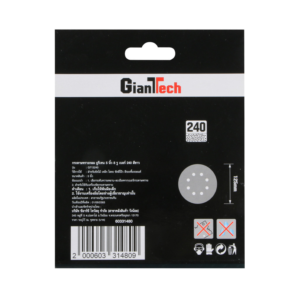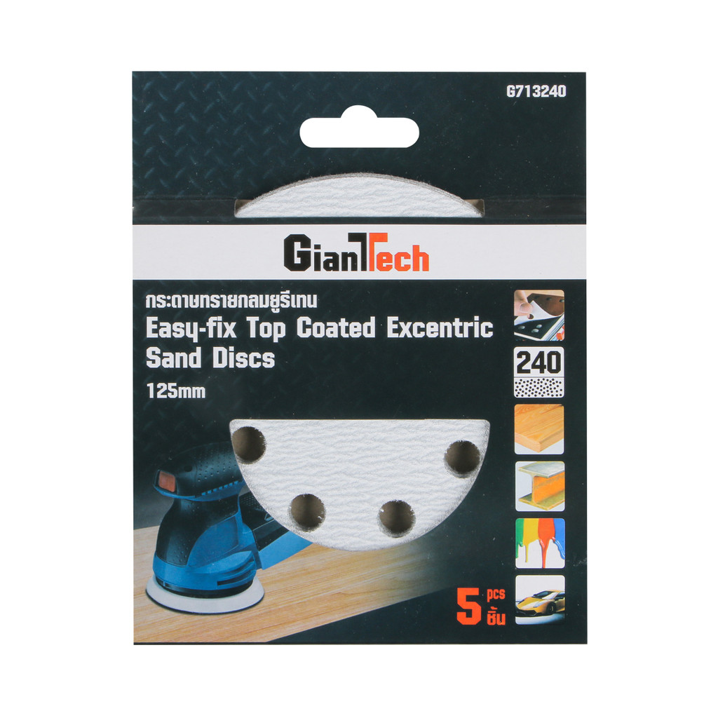 GIANTTECH กระดาษทรายกลม ยูรีเทน รุ่น G713240 เบอร์ 240 ขนาด 5 นิ้ว 8 รู (แพ็ค 5 ชิ้น) สีขาว