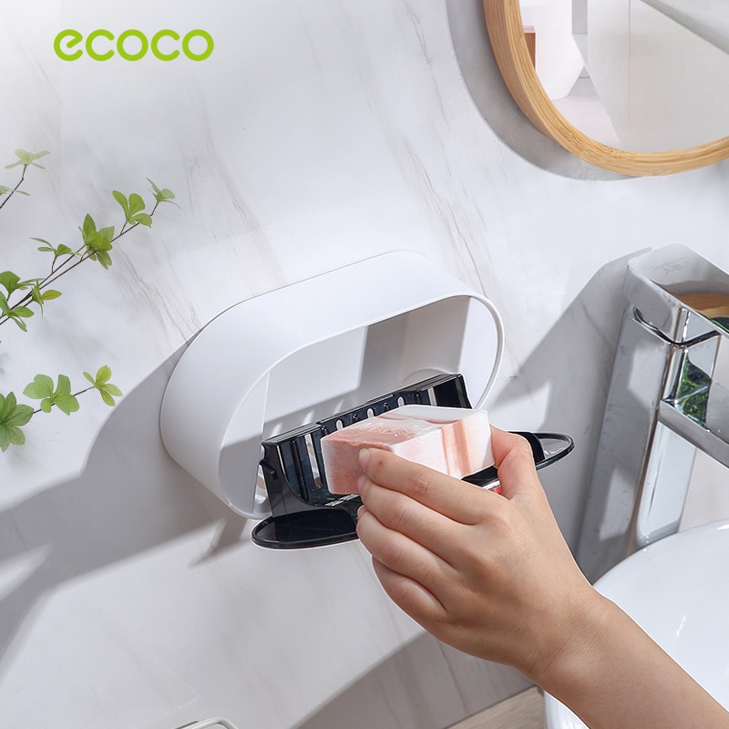 [พร้อมส่ง]Ecoco ใหม่ จานวางสบู่ แบบติดผนัง ไม่มีรูพรุน พร้อมฝาปิด ช่องคู่ หอย ชั้นวางสบู่ สําหรับห้องน้ํา