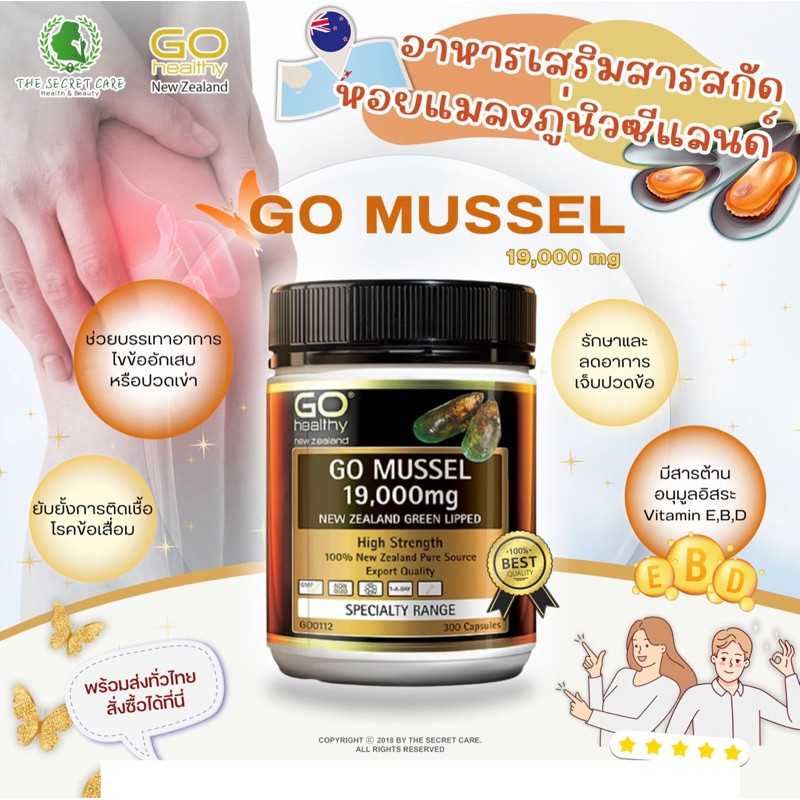 พร้อมส่ง แพคเกจใหม่ หมดอายุ 12/2027 Go Healthy Go Mussel 19,000mg New Zealand Green Lipped บรรจุ 300 เม็ด