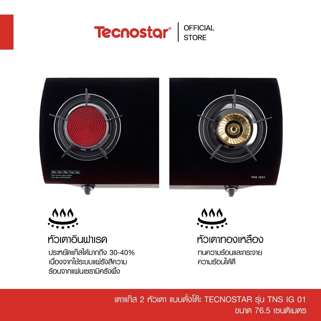 เตาแก๊สอินฟาเรด 2 หัวเตา แบบตั้งโต๊ะ Tecnostar รุ่น TNS IG 01 ขนาด 76.5 ซม.