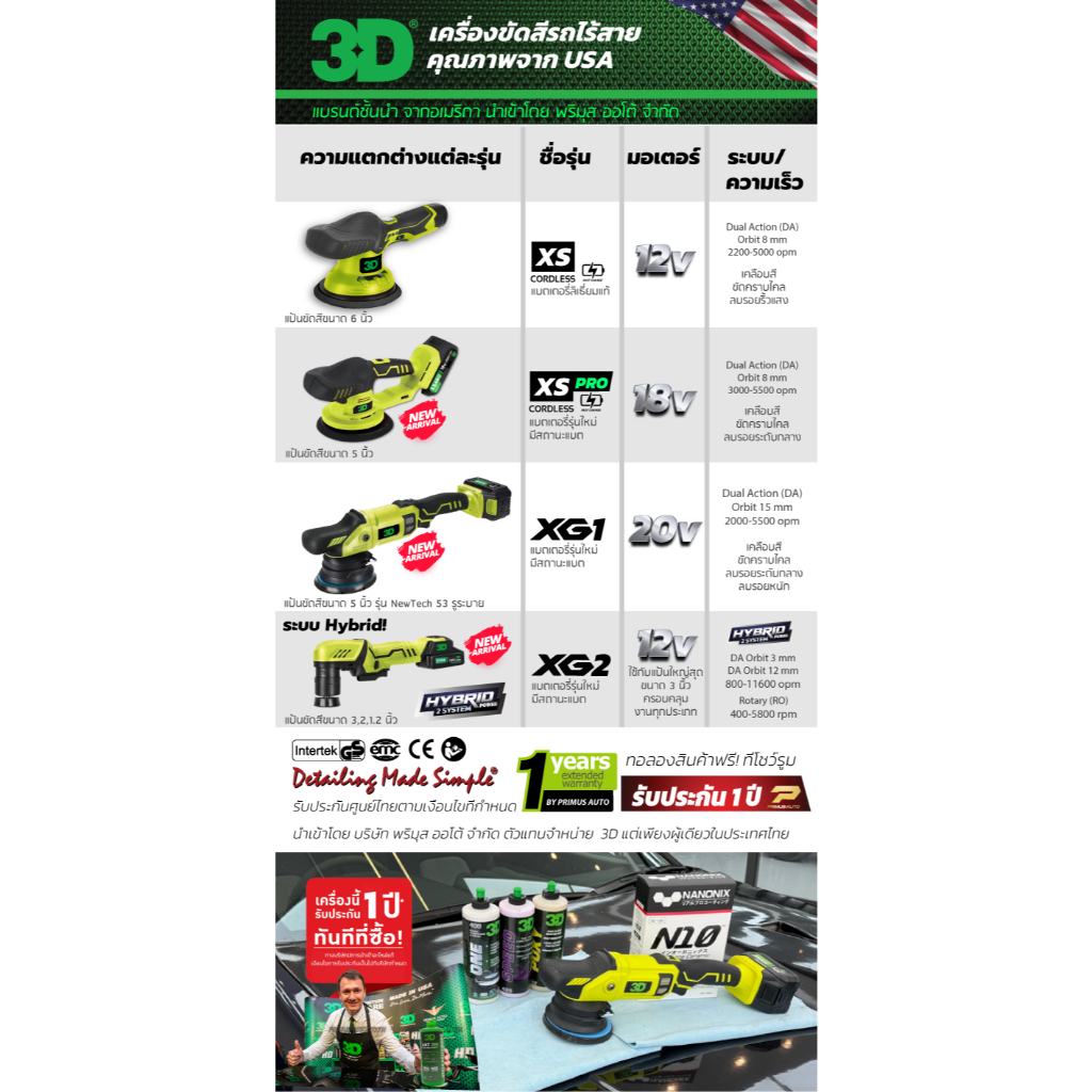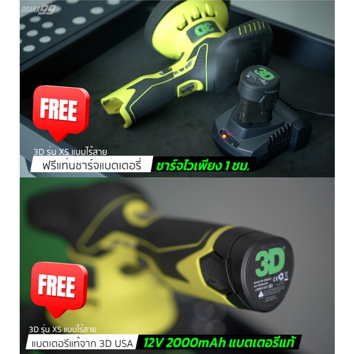 เครื่องขัดสีรถ 3D XS แบบไร้สาย Set G + น้ำยาขัดสี 3D ONE แบรนด์ 3D USA รับประกันศูนย์ไทย