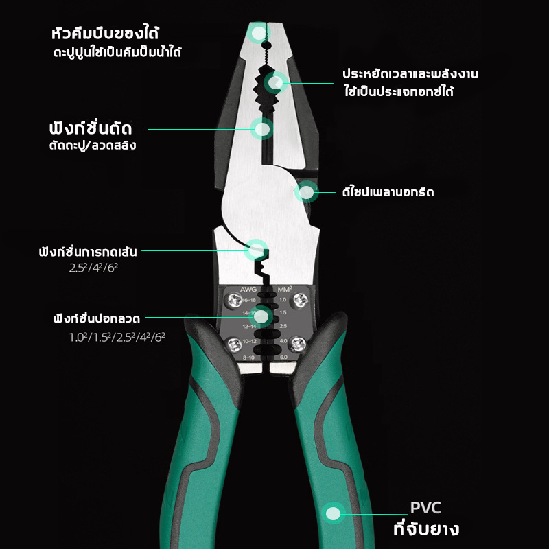 MOVATEK คีมปากจิ้งจก ครีมปากจิ้งจกแหลมตัดลวด 9 นิ้ว