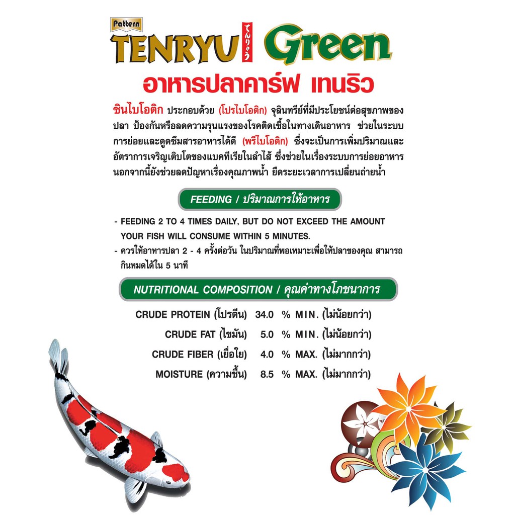 Tenryu Green เทนริวกรีน อาหารปลาคาร์ฟ ชนิดลอยน้ำ (เม็ด 2มม.) ขนาด 7 ก.ก. x จำนวน 1 ถุง