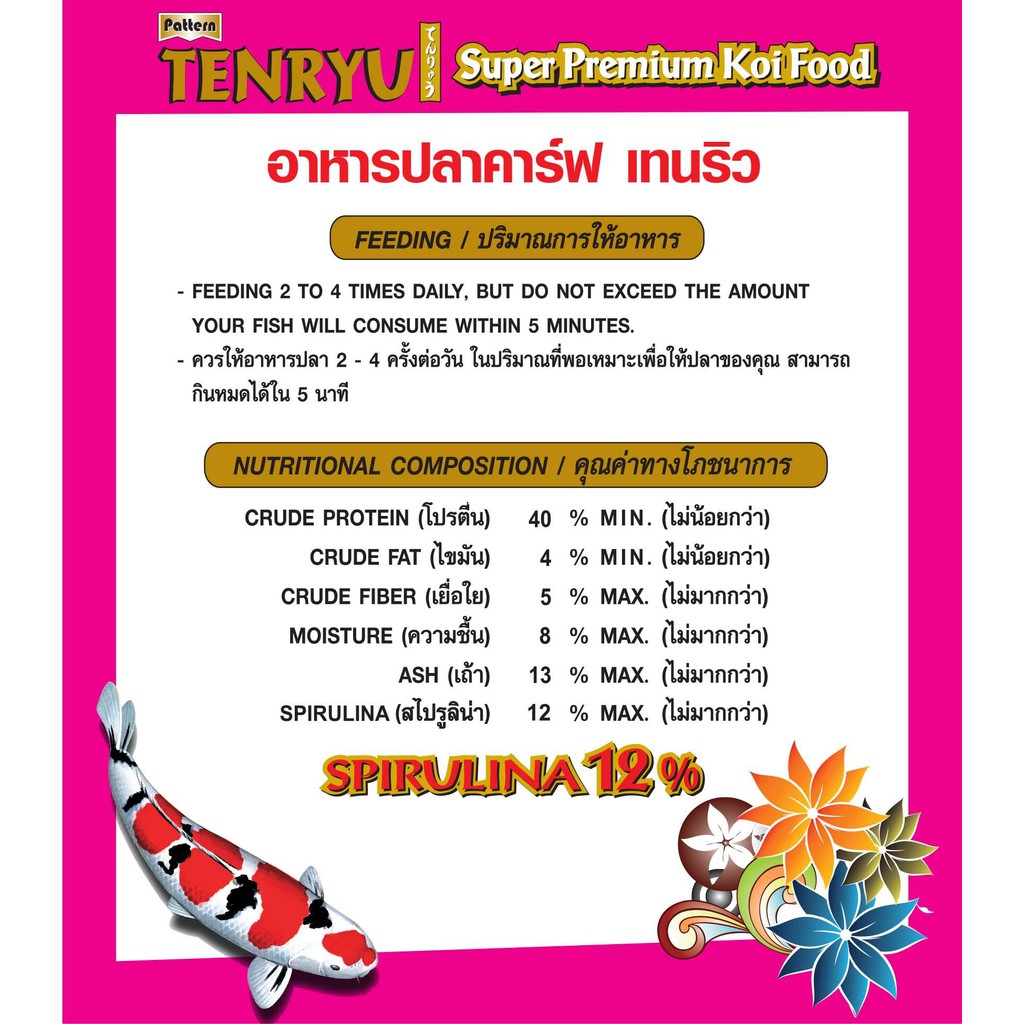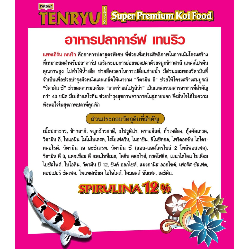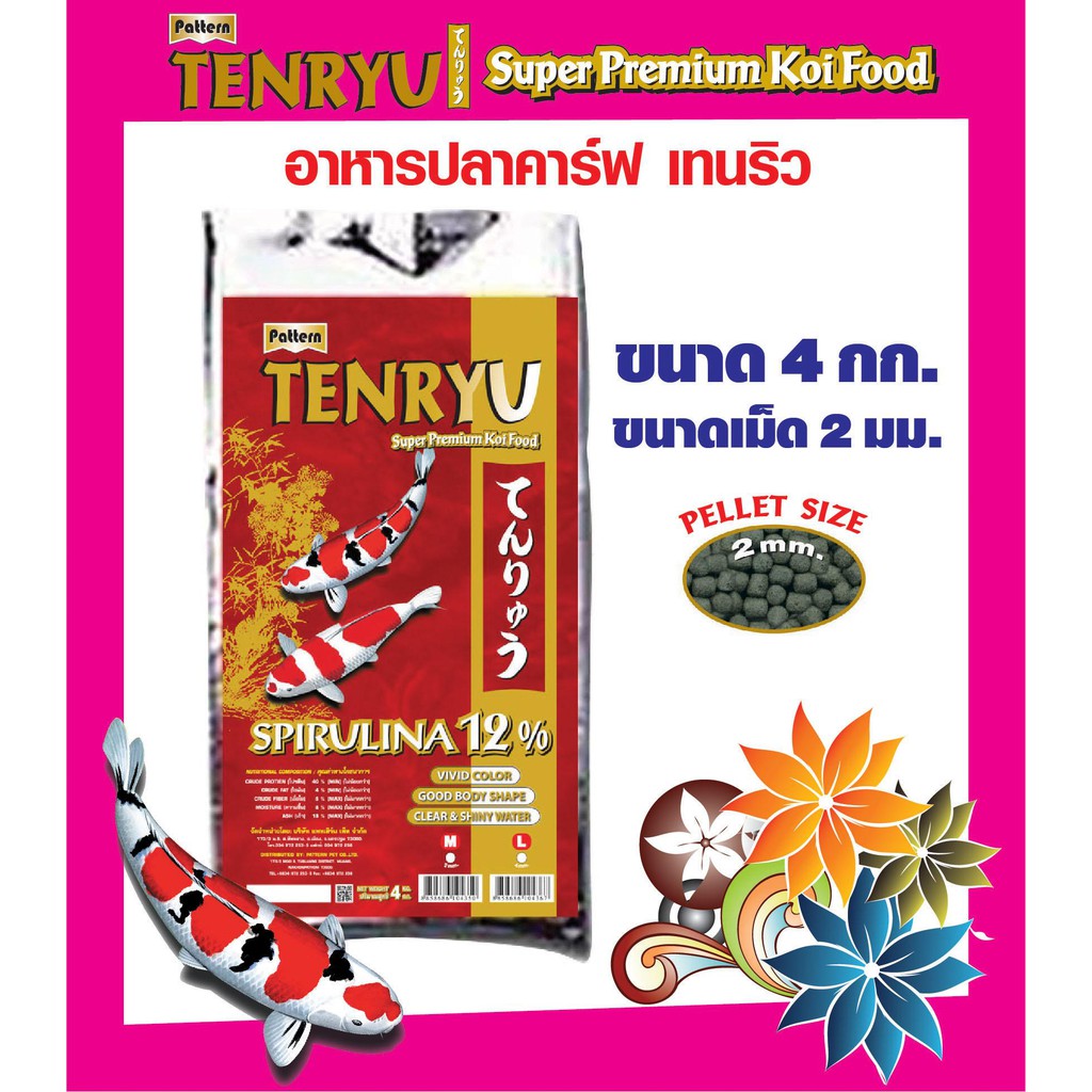 Tenryu Super Premium เทนริวสูตรซุปเปอร์พรีเมี่ยม(สีแดง) เร่งสี ขนาด 4 กก. เม็ด 2 มม 1 ถุง