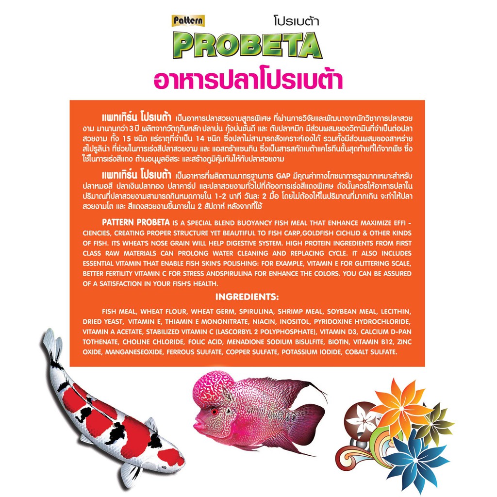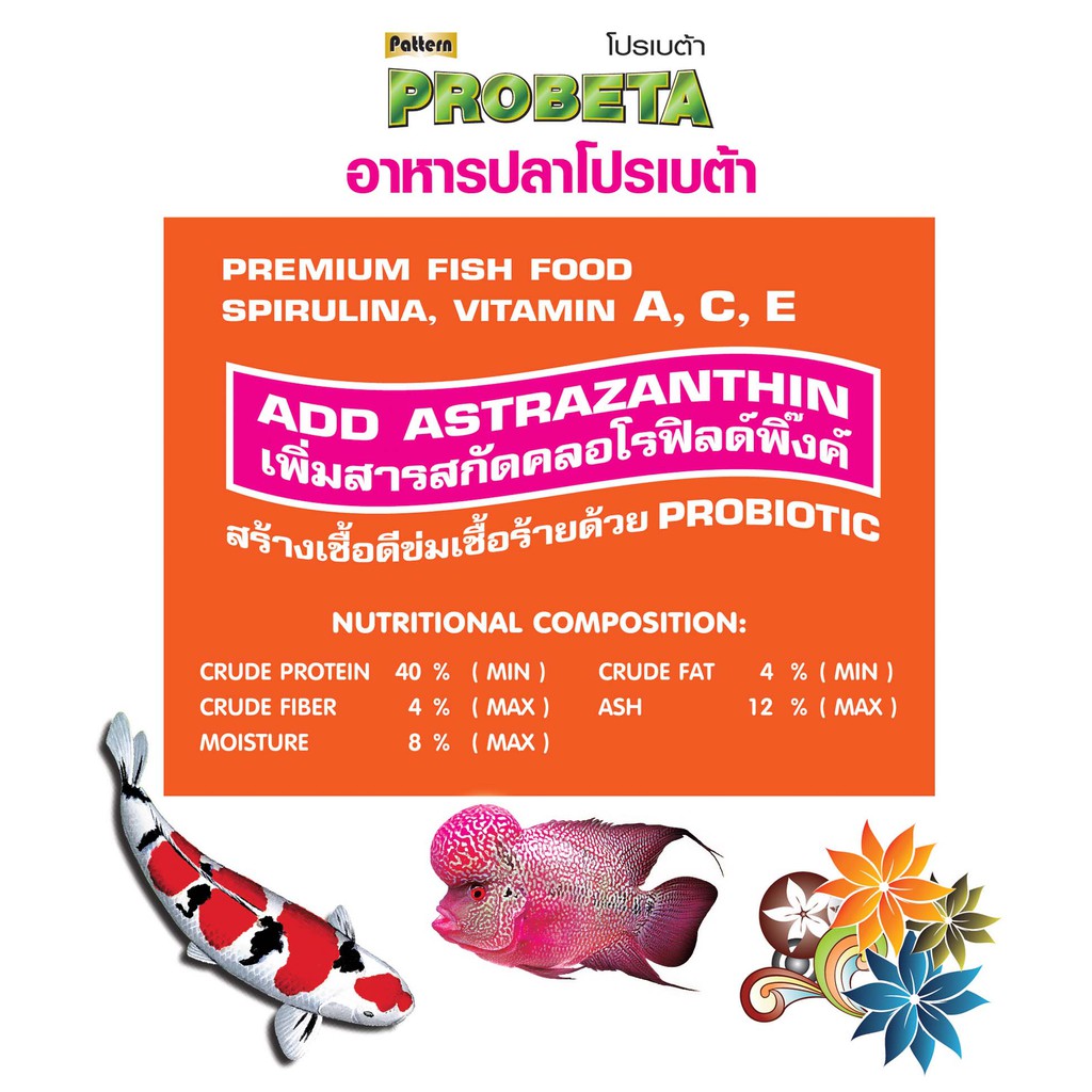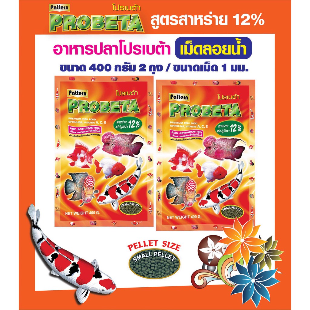 Probeta โปรเบต้า อาหารปลาโปรเบต้า เม็ดลอยน้ำ สูตรสาหร่าย 12 % เม็ด 1 มม. ขนาด 400 กรัม x จำนวน 2 ถุง