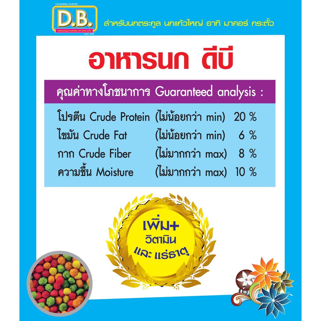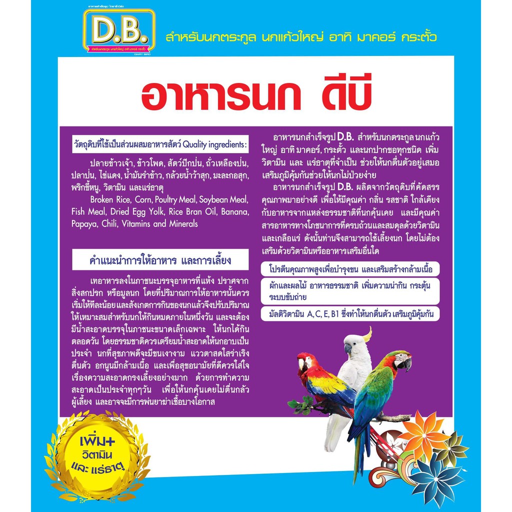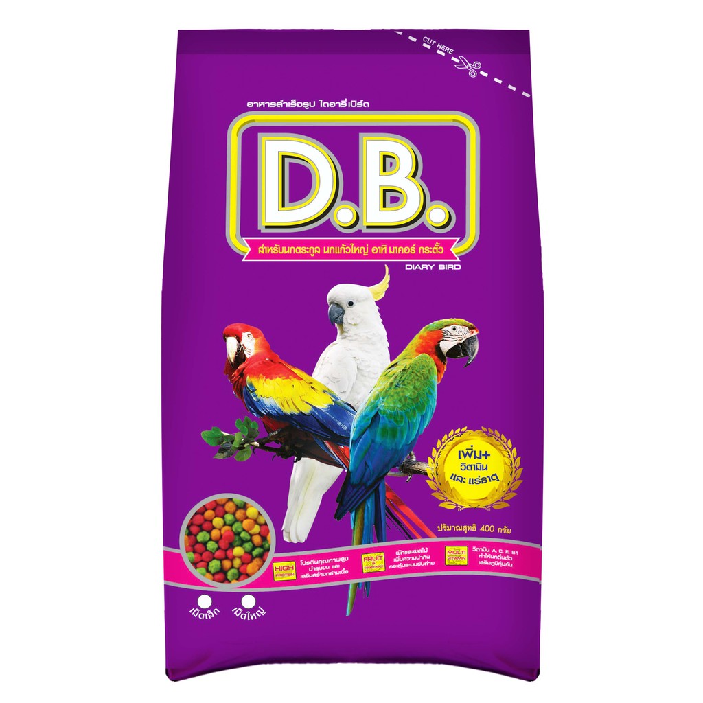 อาหารนก D.B. นกแก้วมาคอร์ ขนาด 400กรัม เม็ด S จำนวน 3 ถุง