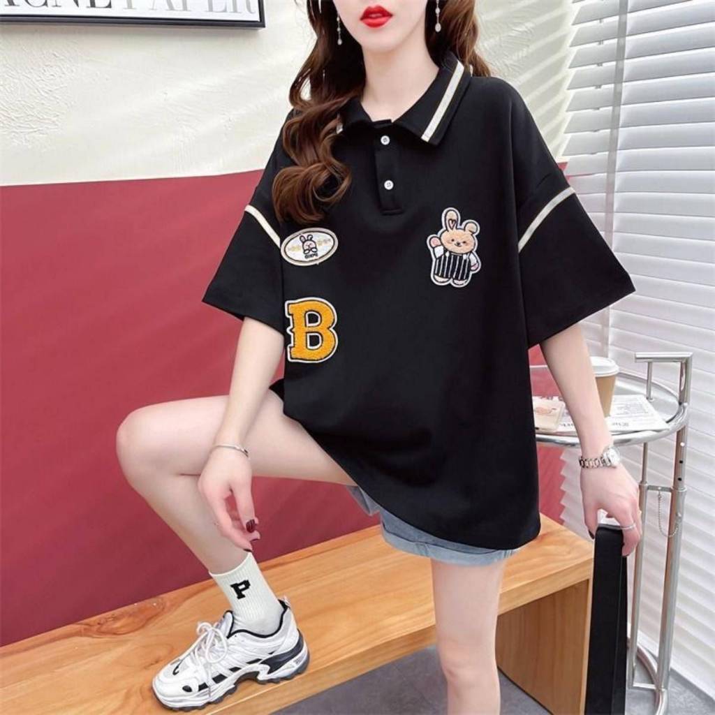 เสื้อแขนสั้นคอปก Oversize (อก 52-66 นิ้ว) งานปัก ผ้าจูติไมโคร(ผ้าบาง) ยืดนิดหน่อย A19