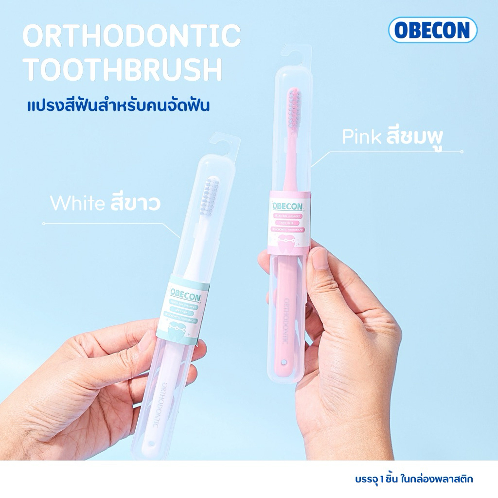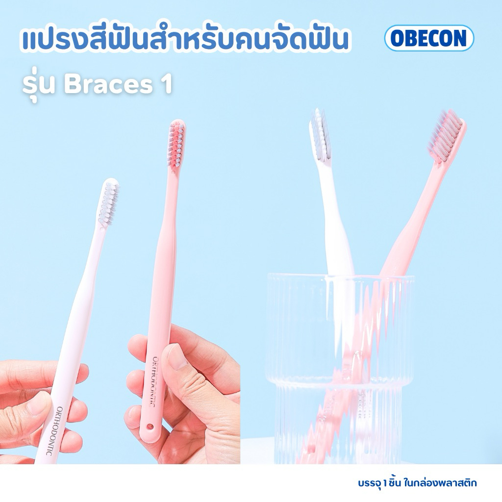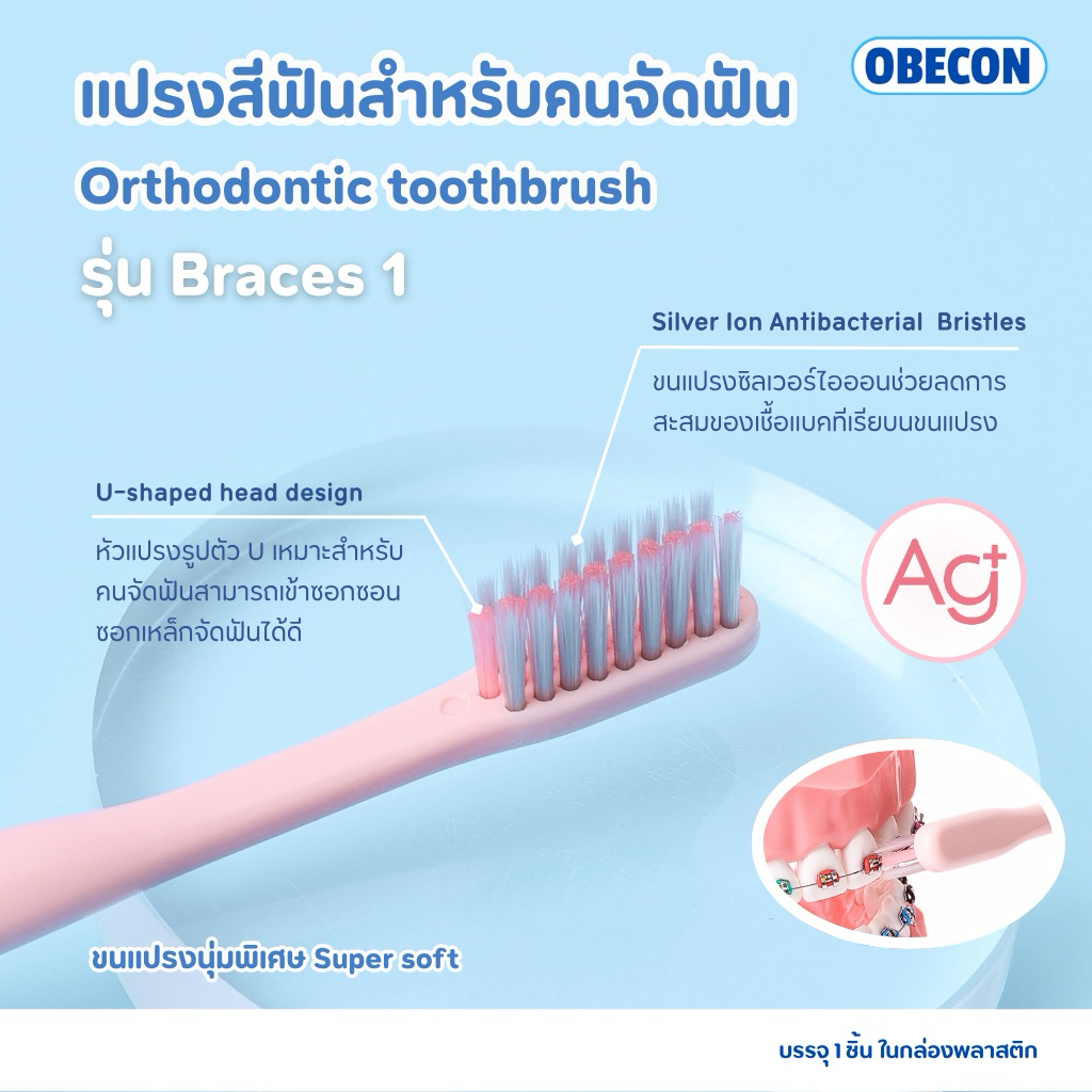 OBECON แปรงสีฟัน สำหรับคนจัดฟัน สีชมพูพาสเทล 1 ด้าม ขนแปรงนุ่ม