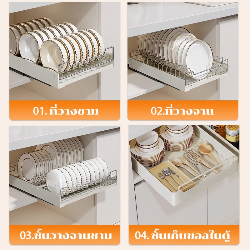 Cambond ตะกร้าสแตนเลสแบบดึงออกได้สำหรับตู้ครัว ตะแกรงจัดเก็บจาน ราววางจานแบบดึงออกได้