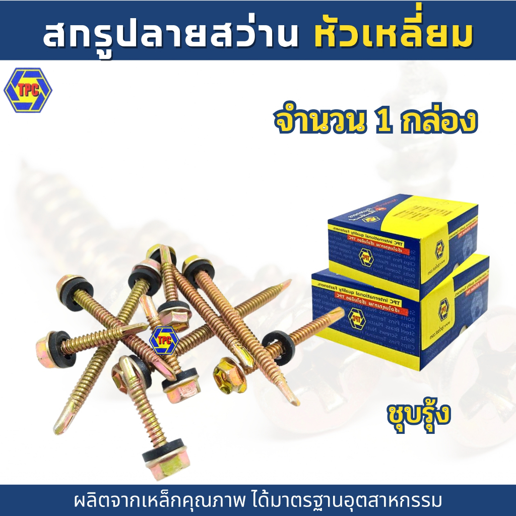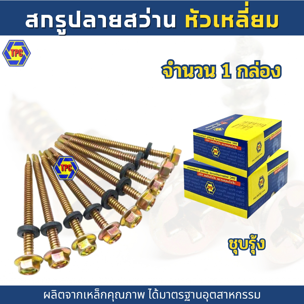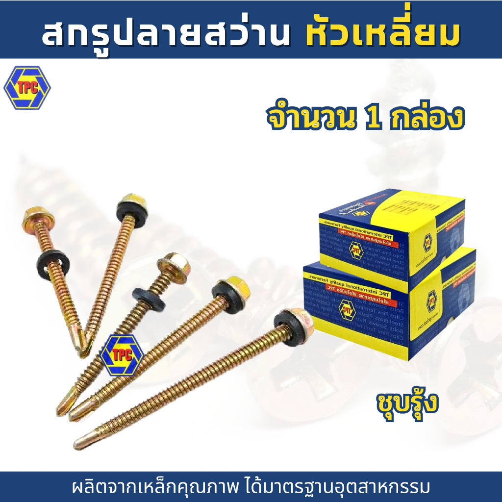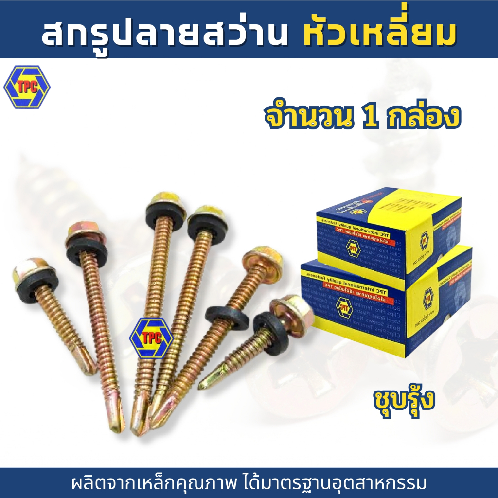 (1กล่อง) สกรูปลายสว่านหัวเหลี่ยม เบอร์#12 HSD