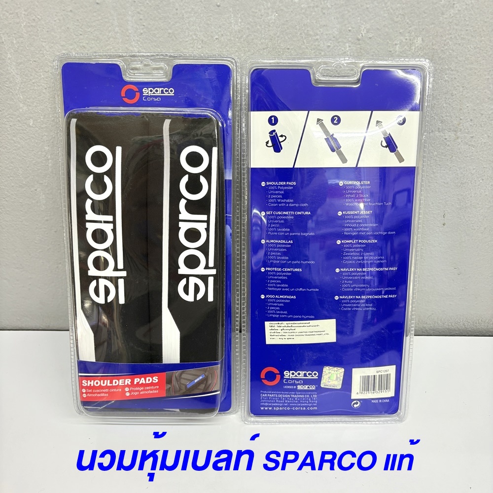 Sparco นวมหุ้มเบลท์ รุ่นใหม่ สีดำ โลโก้ขาว สินค้าแท้ 100% หุ้มเข็มขัดนิรภัย สปาโก้