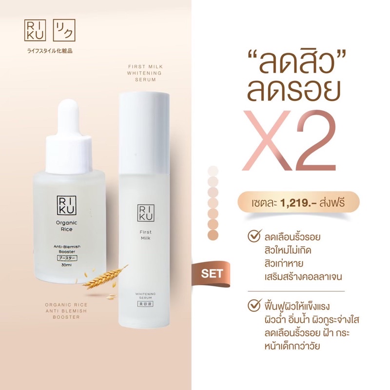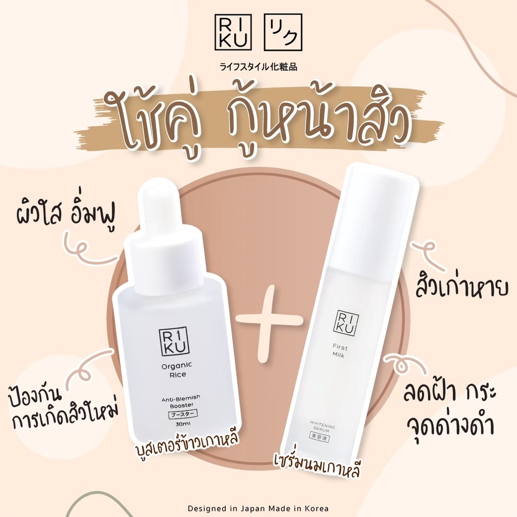 RIKU เซรั่มน้่ำนมข้าว+บูสเตอร์น้ำนมข้าว จากเกาหลี ลดสิว ลดรอย ผิวขาวใส เนียนมีออร่า ลดฝ้ากระ ริคุ