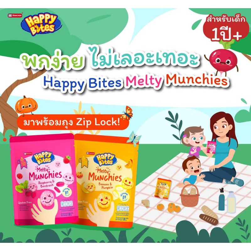 Happy Bites Melty Munchies ขนมข้าวหอมมะลิอบกรอบสำหรับเด็ก 12 เดือนขึ้นไป