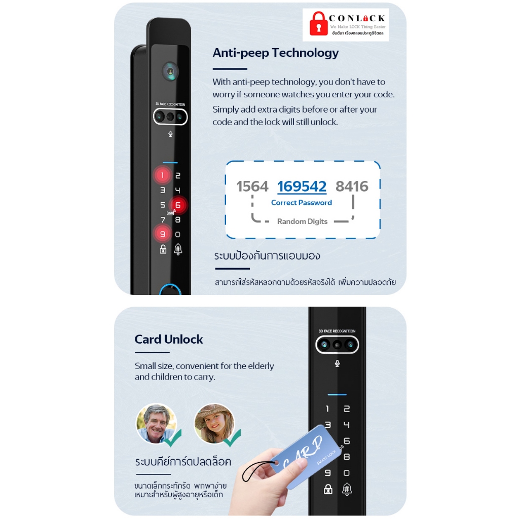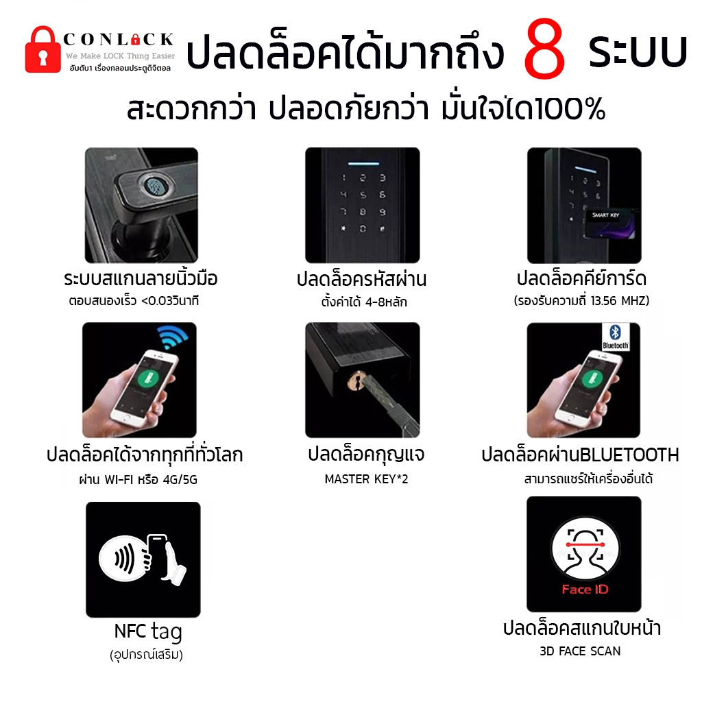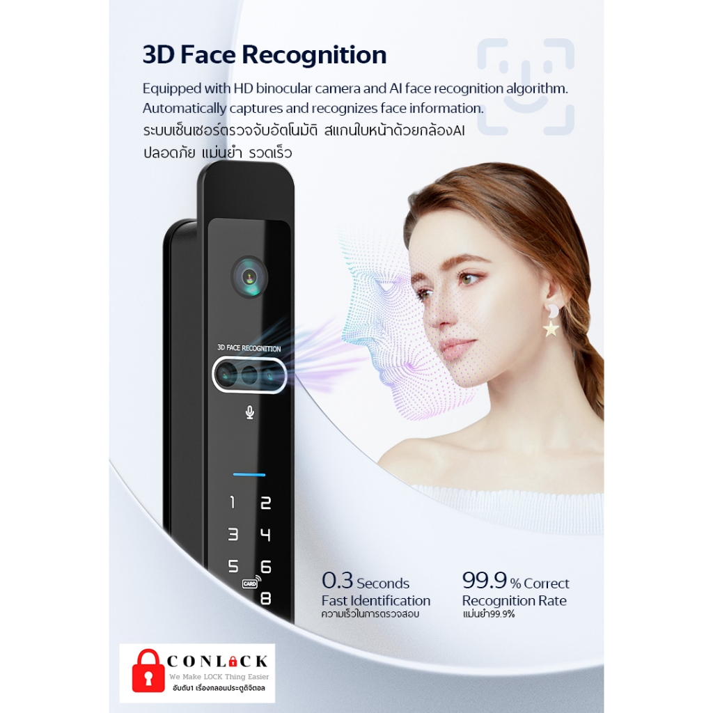 CONLOCK TUYA Digital door lock บานเลื่อน บานสไลด์ สแกนใบหน้า กลอนไฟฟ้า CL-X70