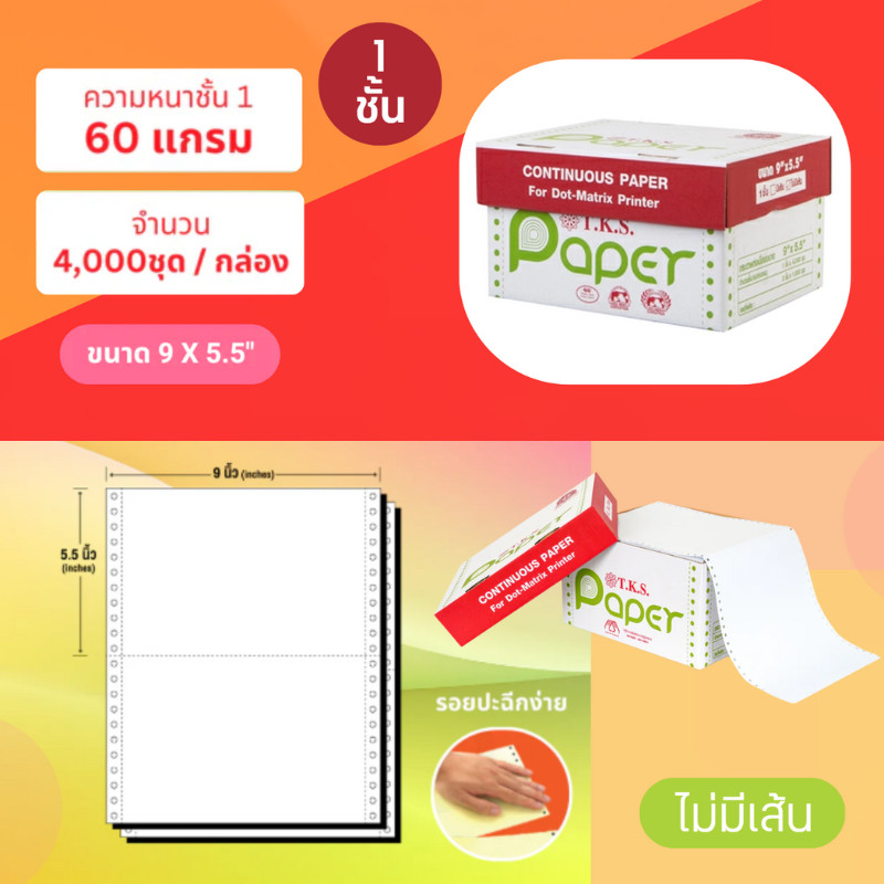 T.K.S. กระดาษต่อเนื่อง ไม่มีเส้น ขนาด 9x5.5 นิ้ว 1 ชั้น