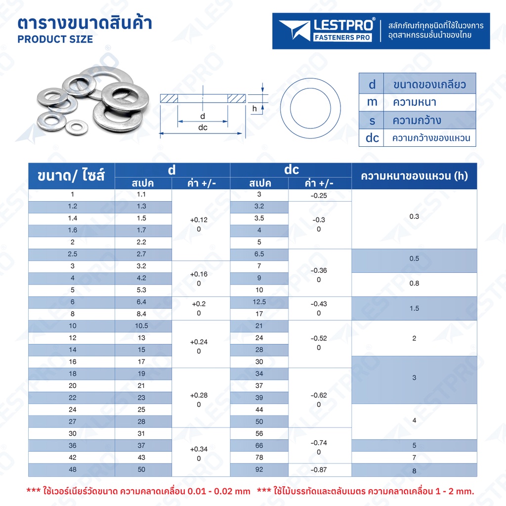 แหวนอีแปะ แหวนรอง น็อตสกรู สแตนเลส 304 M3 M4 M5 M6 M8 M10 M12 Flat Washer Stainless Screw DIN125