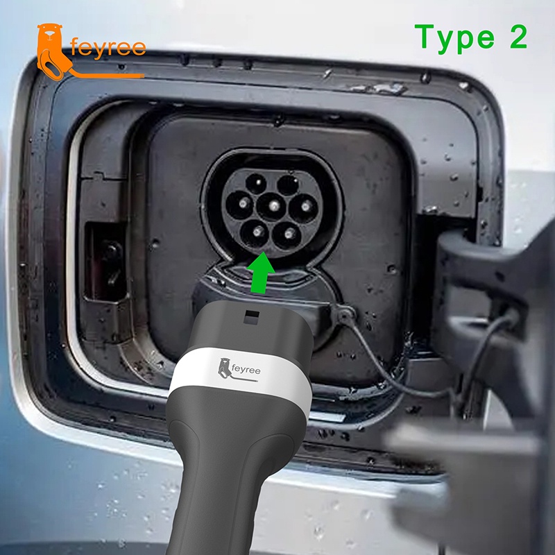 Feyree อะแดปเตอร์ปลั๊กชาร์จด้านข้างรถยนต์ EV Type2 ตัวเมีย IEC62196-2 16A 32A 1 เฟส 11KW 22KW สําหรับยานพาหนะไฟฟ้า EVSE