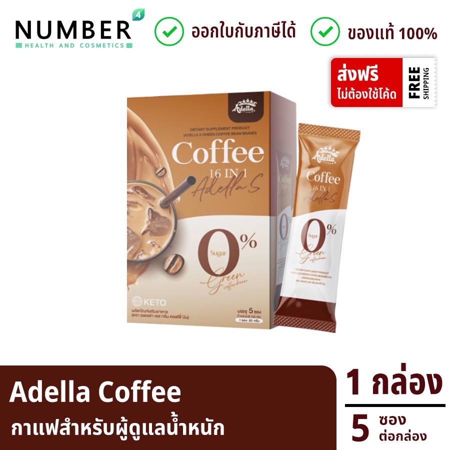 ส่งด่วน!! Adella S Green Coffee กาแฟคุมหิว กาแฟอเดลล่า 1 กล่อง กล่องละ 5 ซอง