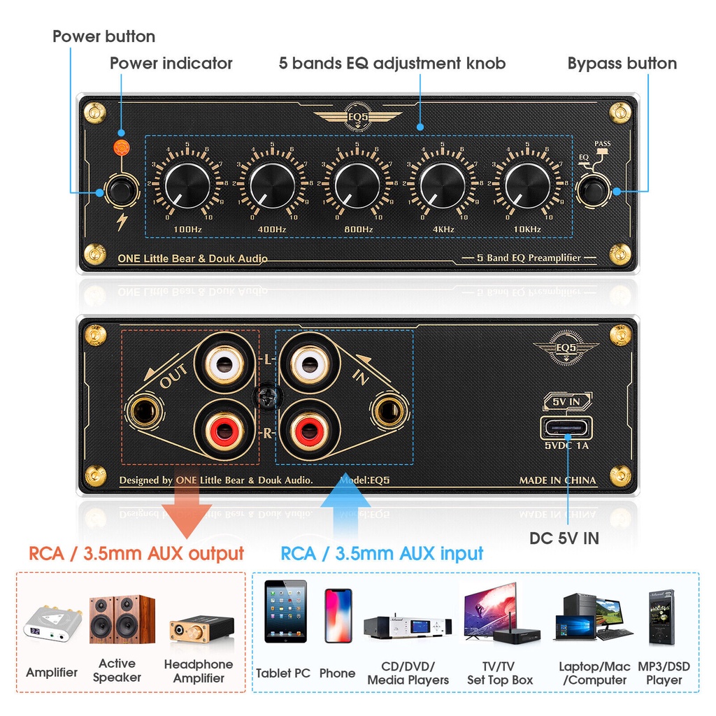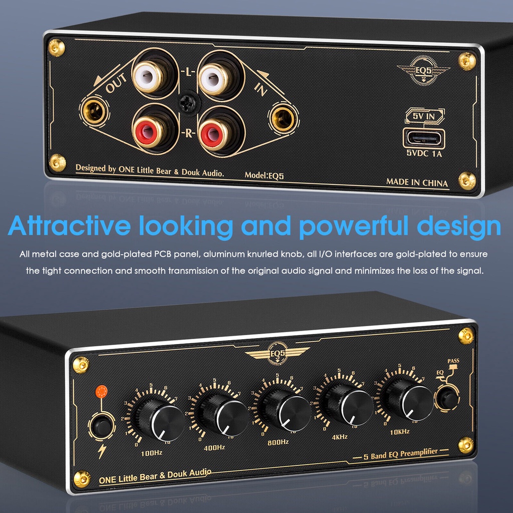 Douk Audio EQ5 Mini 5-Band EQ Preamp Equalizer โปรเซสเซอร์เครื่องเสียงรถยนต์ บ้าน